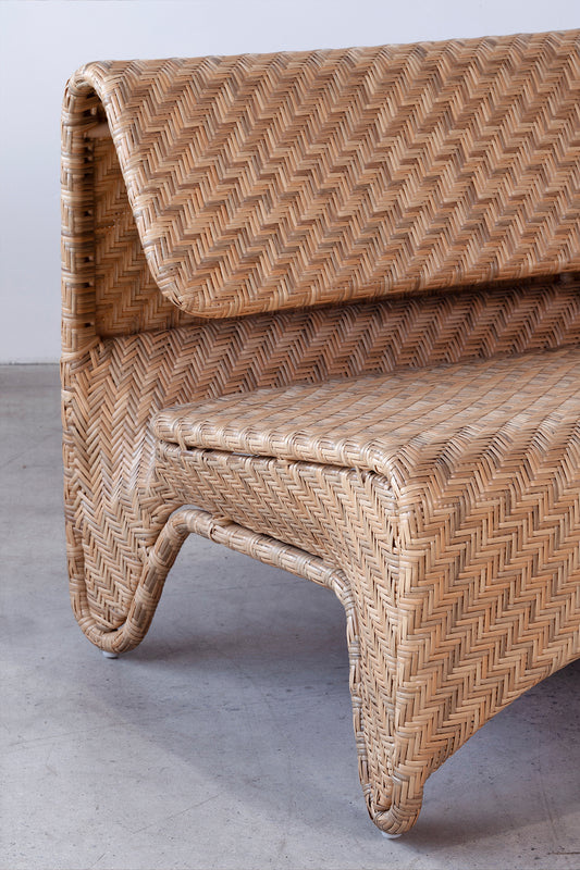 Create a relaxed and chic space with the soft curves of the Zaza Outdoor Sofa. Made from outdoor synthetic weave in a natural hex, with a lightweight and durable aluminium frame.