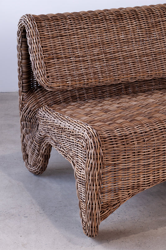 Create a relaxed and chic space with the soft curves of the Zaza Outdoor Sofa. Made from outdoor synthetic weave in a tonal weave, with a lightweight and durable aluminium frame.