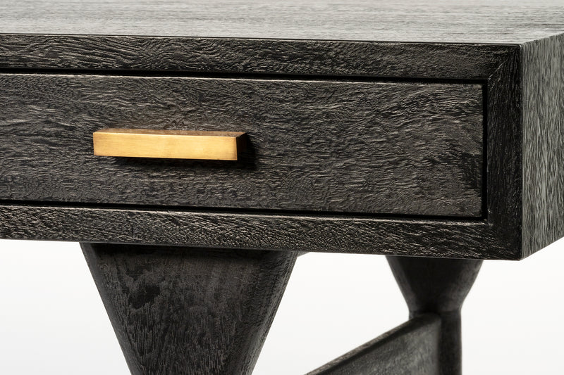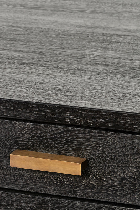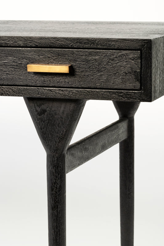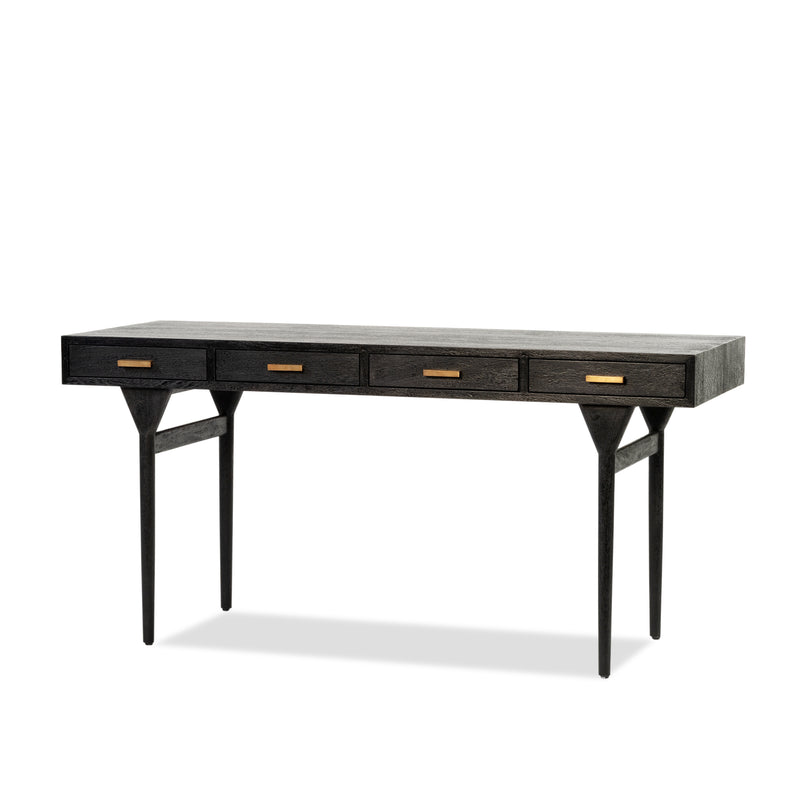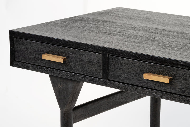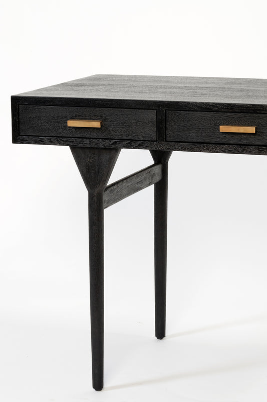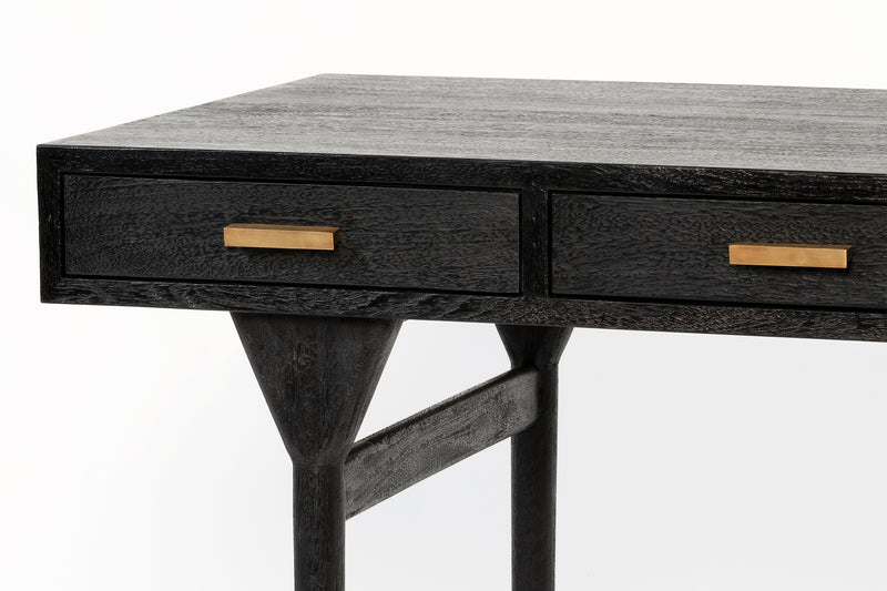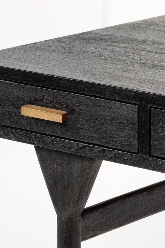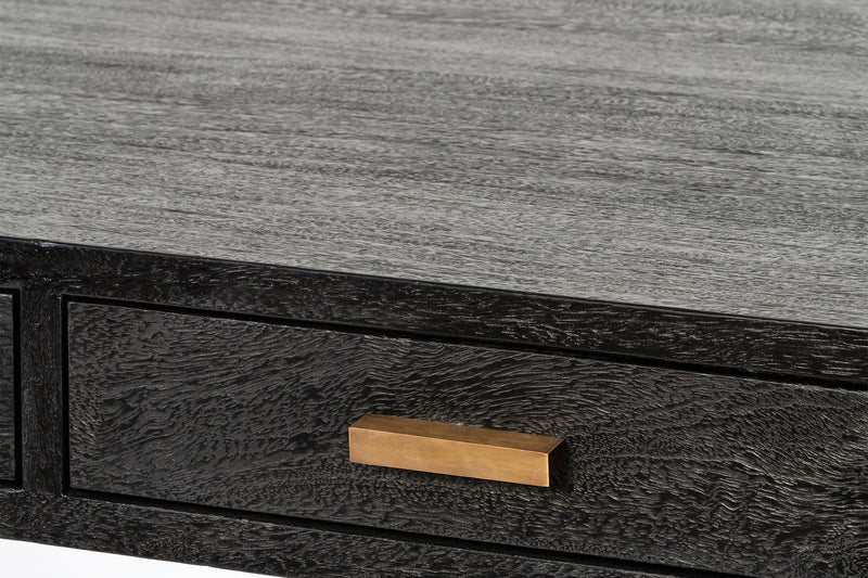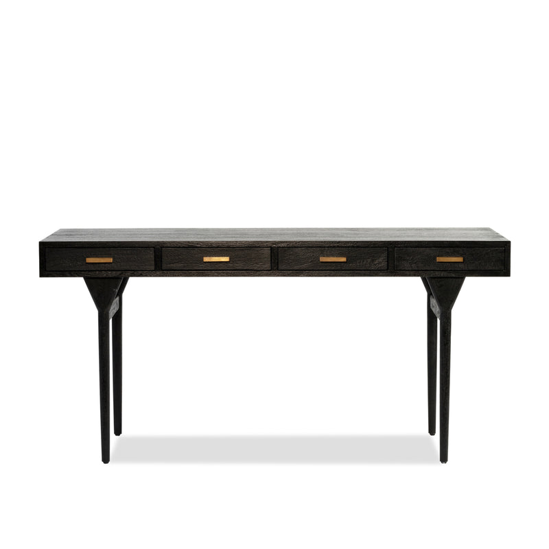 Made from solid mango wood with Black finish. Four drawers for extra storage with solid brass handles.