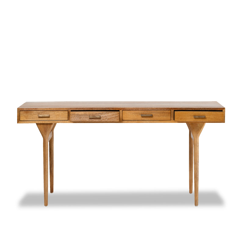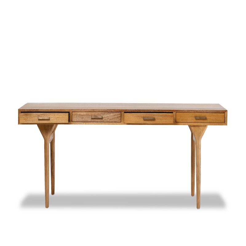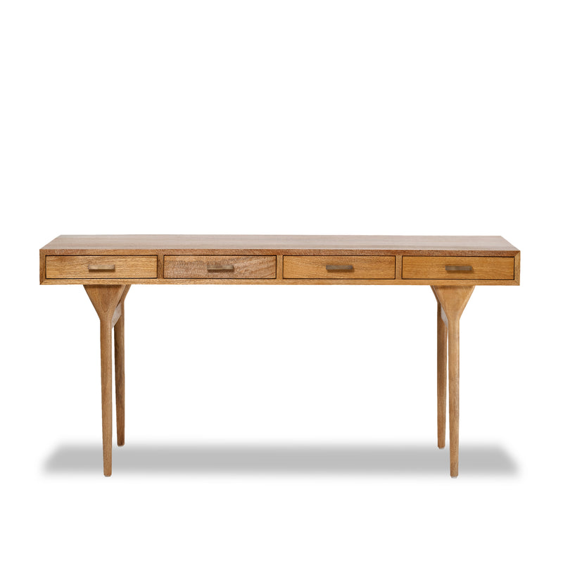 Made from solid mango wood with Natural Sealed finish. Four drawers for extra storage with solid brass handles.