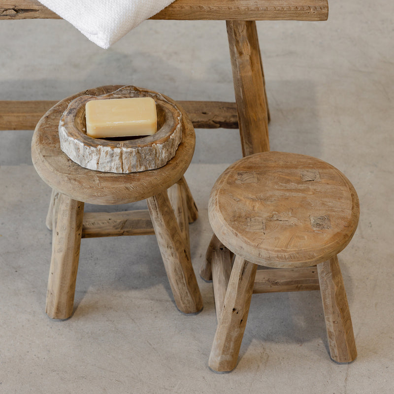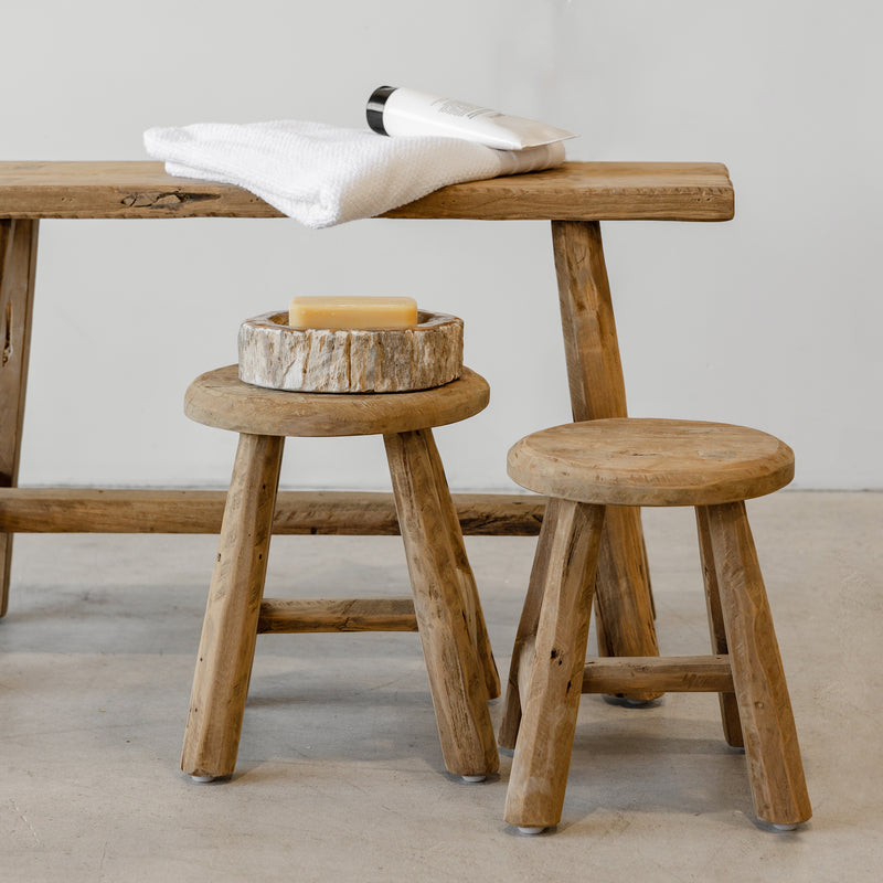 Crafted from solid teak hardwood in a natural raw finish, the Organic Teak Stool – Round celebrates the organic beauty of the material. Featuring a gently rounded seat and sturdy hand-crafted legs, each piece highlights the natural grain and individual character of the timber. A versatile addition to the bathroom, bedroom or living space, this stool offers everyday functionality with timeless appeal.
