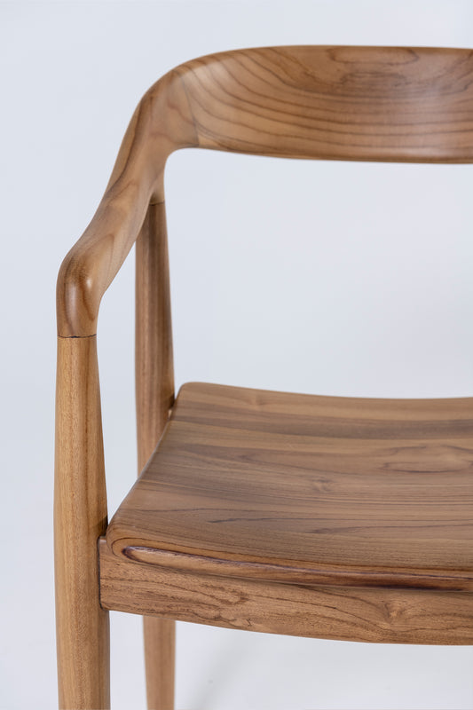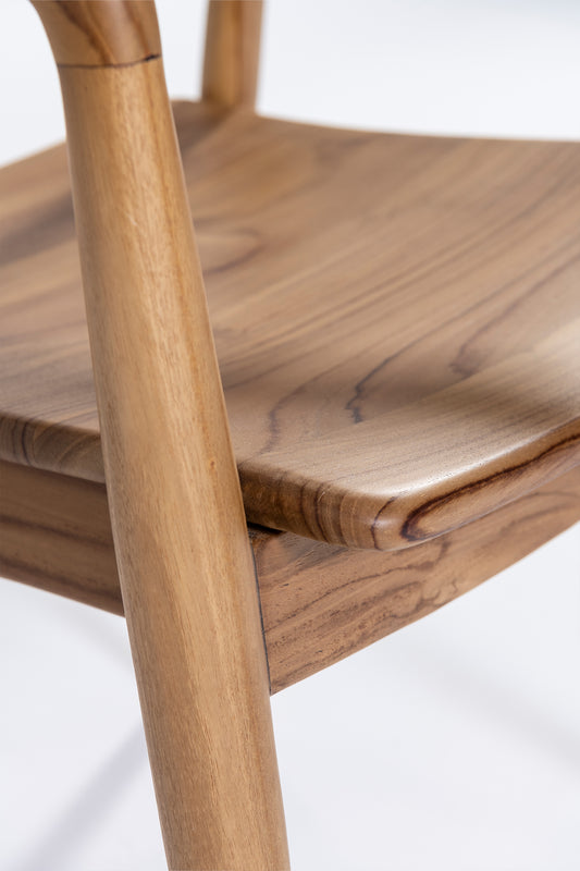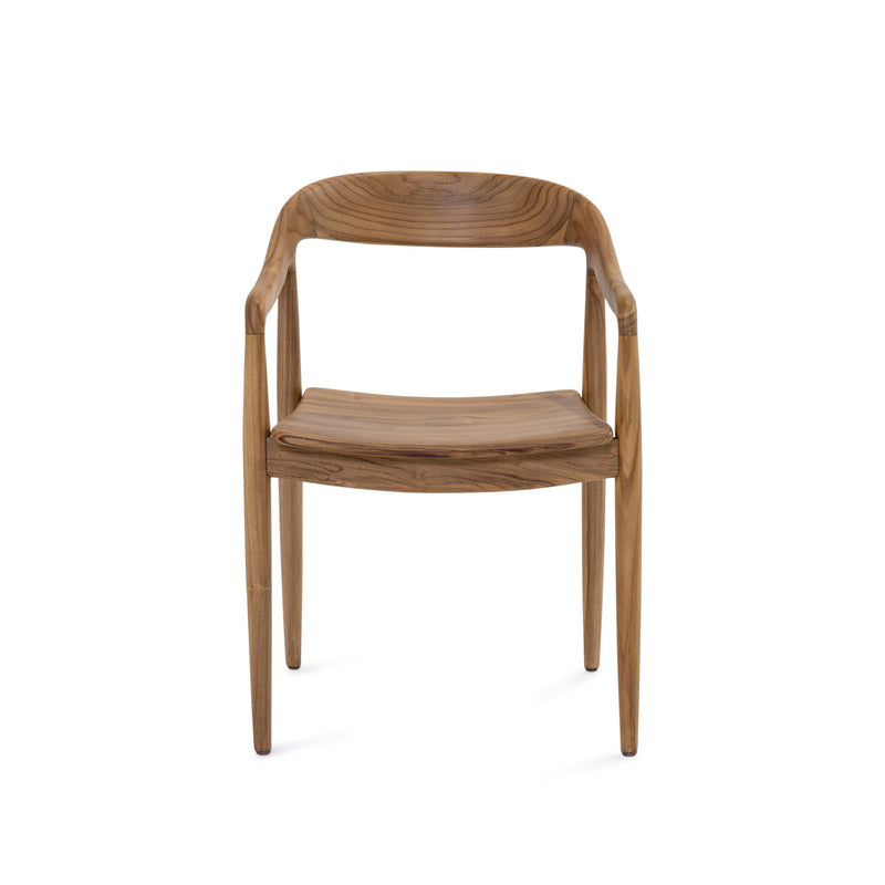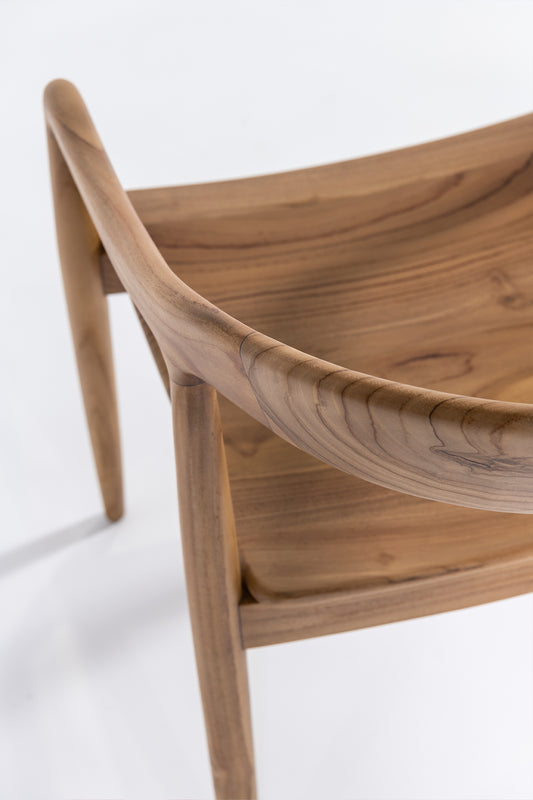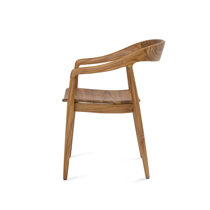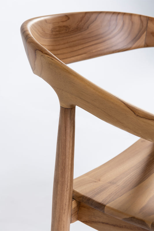 The Henry Chair, features a minimalist modern design with sleek curved lines to mould to your body for added comfort. Crafted from solid teak wood with raw sealed, smooth surface.