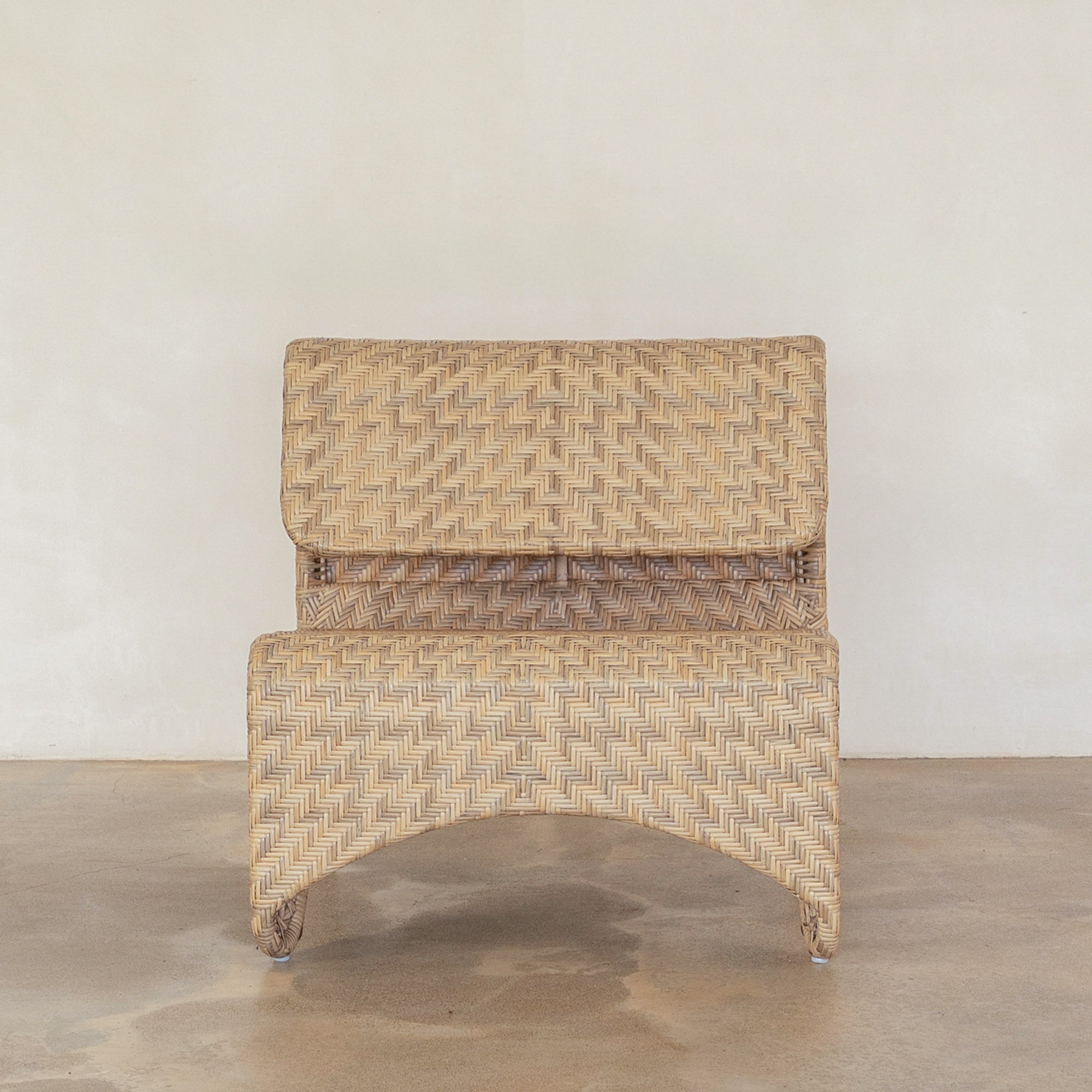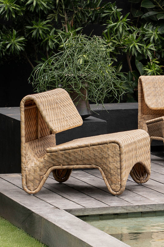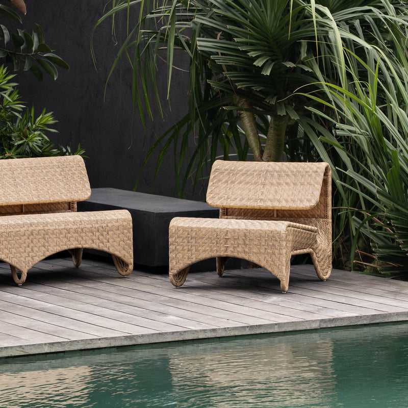 Elevate your space with the soft curves and relaxed vibe of the Zaza Outdoor Chair. Made with a lightweight and durable aluminium frame, with outdoor synthetic weave in natural hex weave.