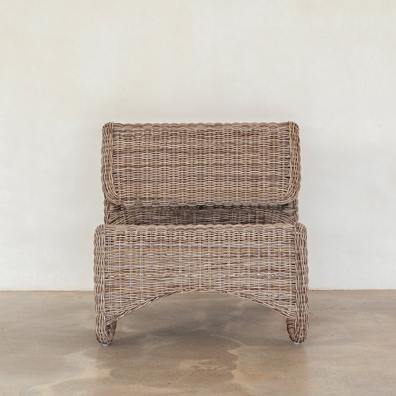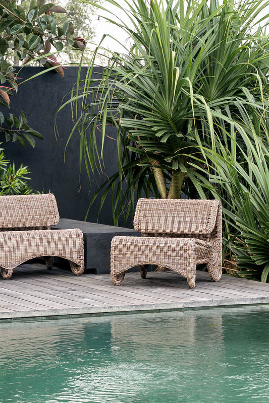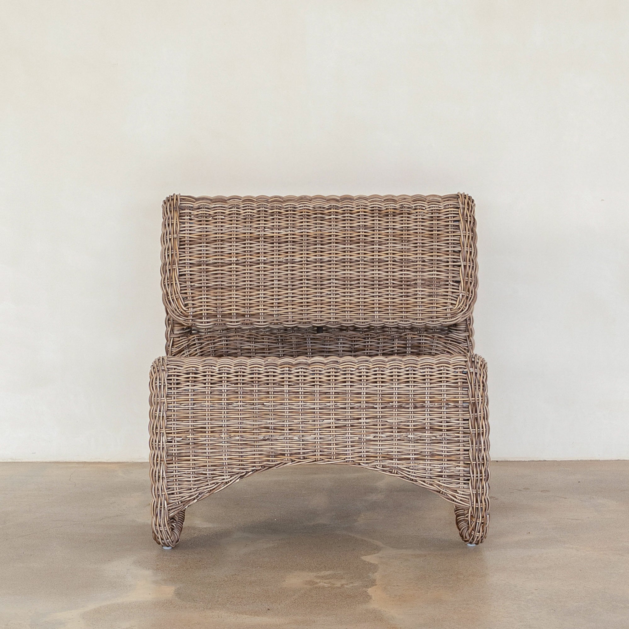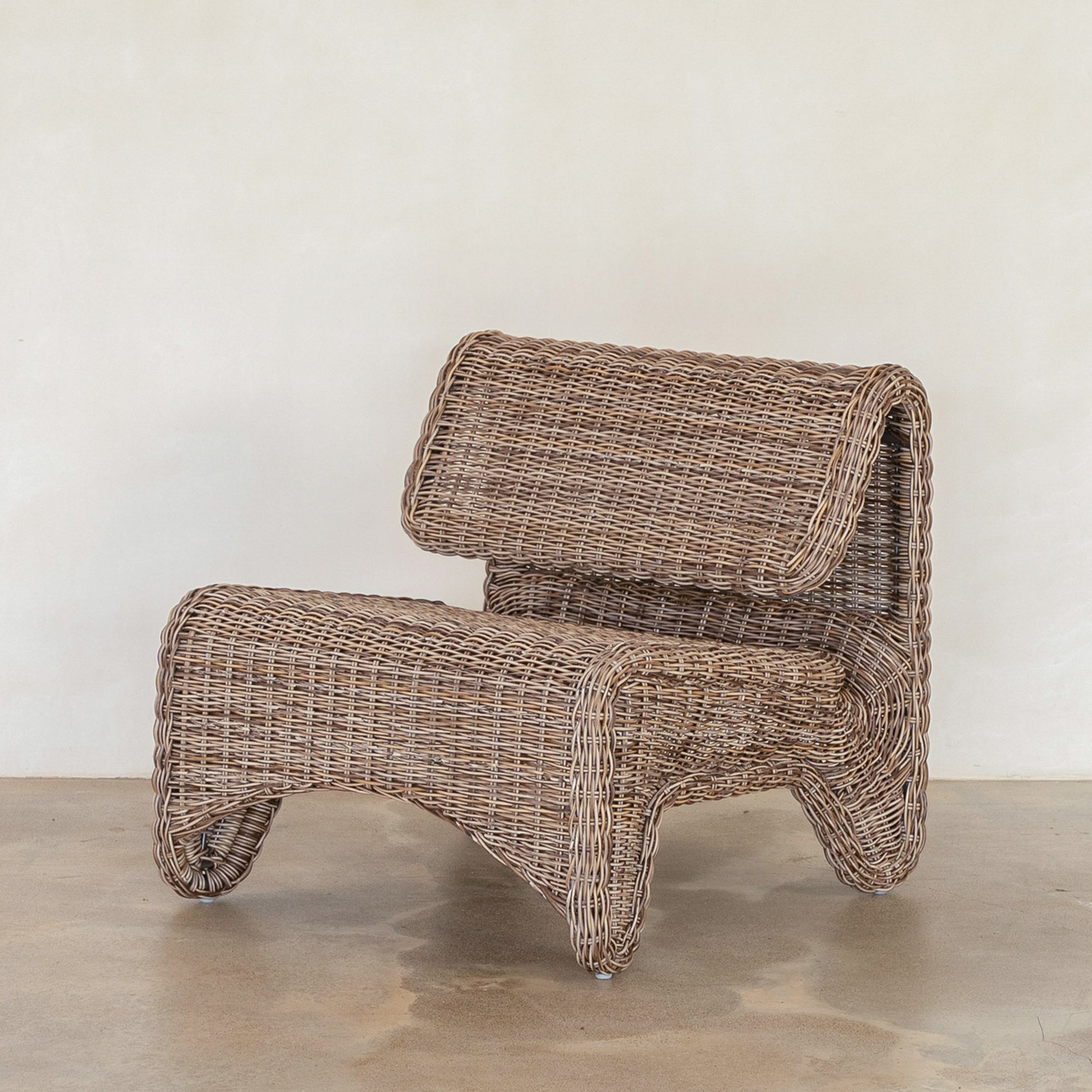 Elevate your space with the soft curves and relaxed vibe of the Zaza Outdoor Chair. Made with a lightweight and durable aluminium frame, with outdoor synthetic weave in tonal weave.