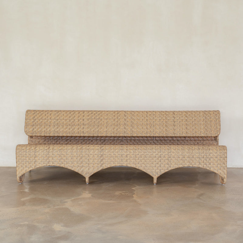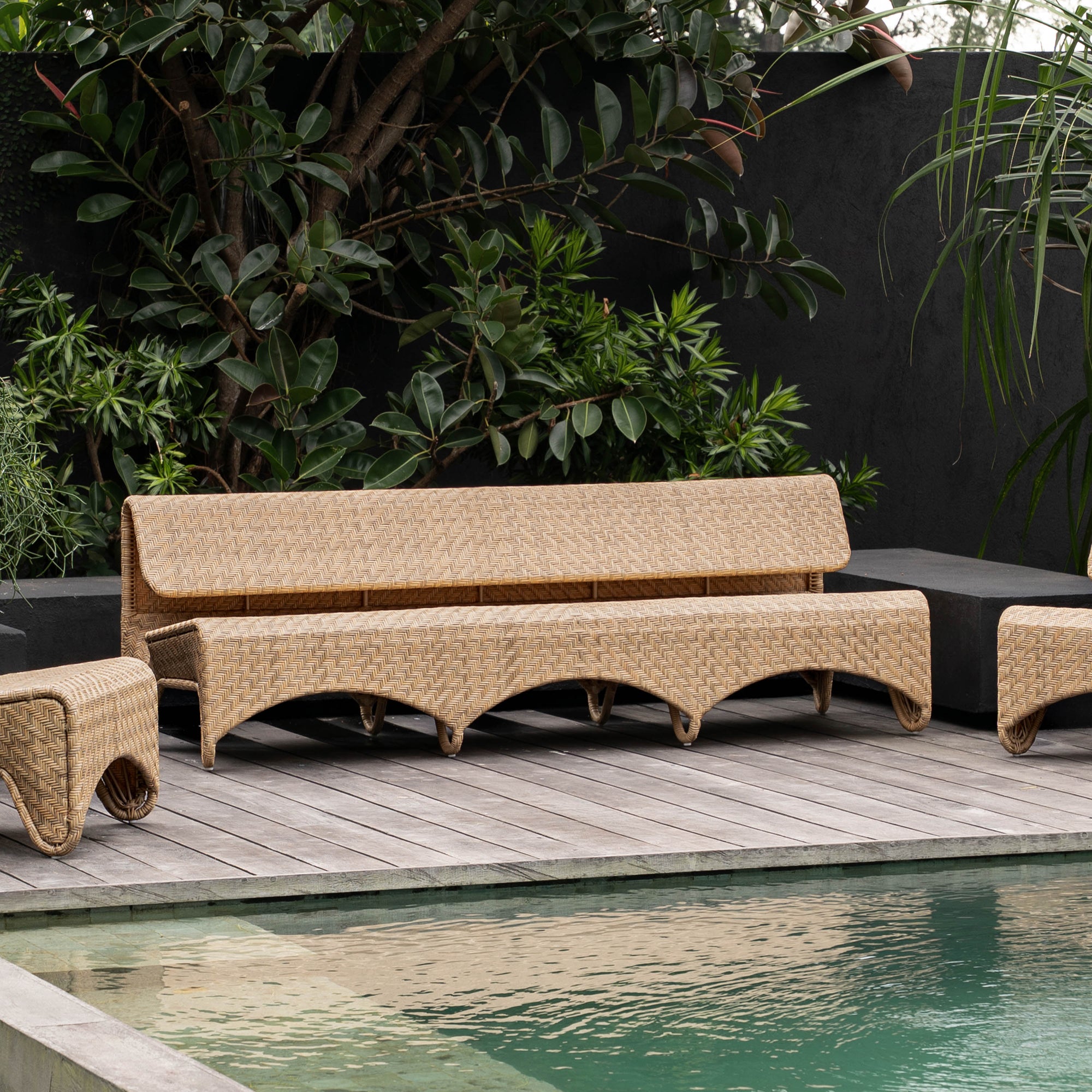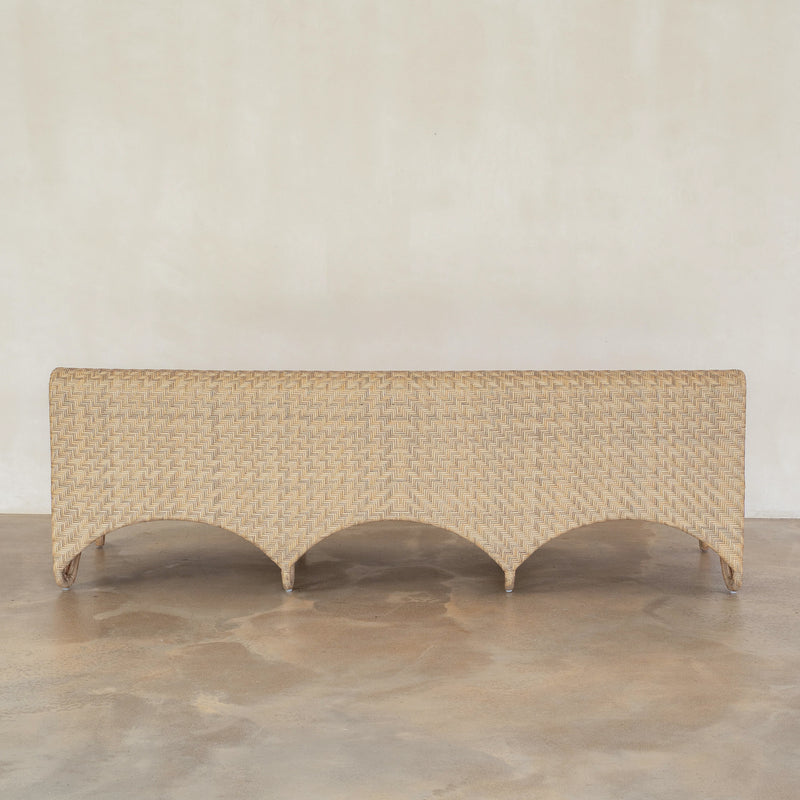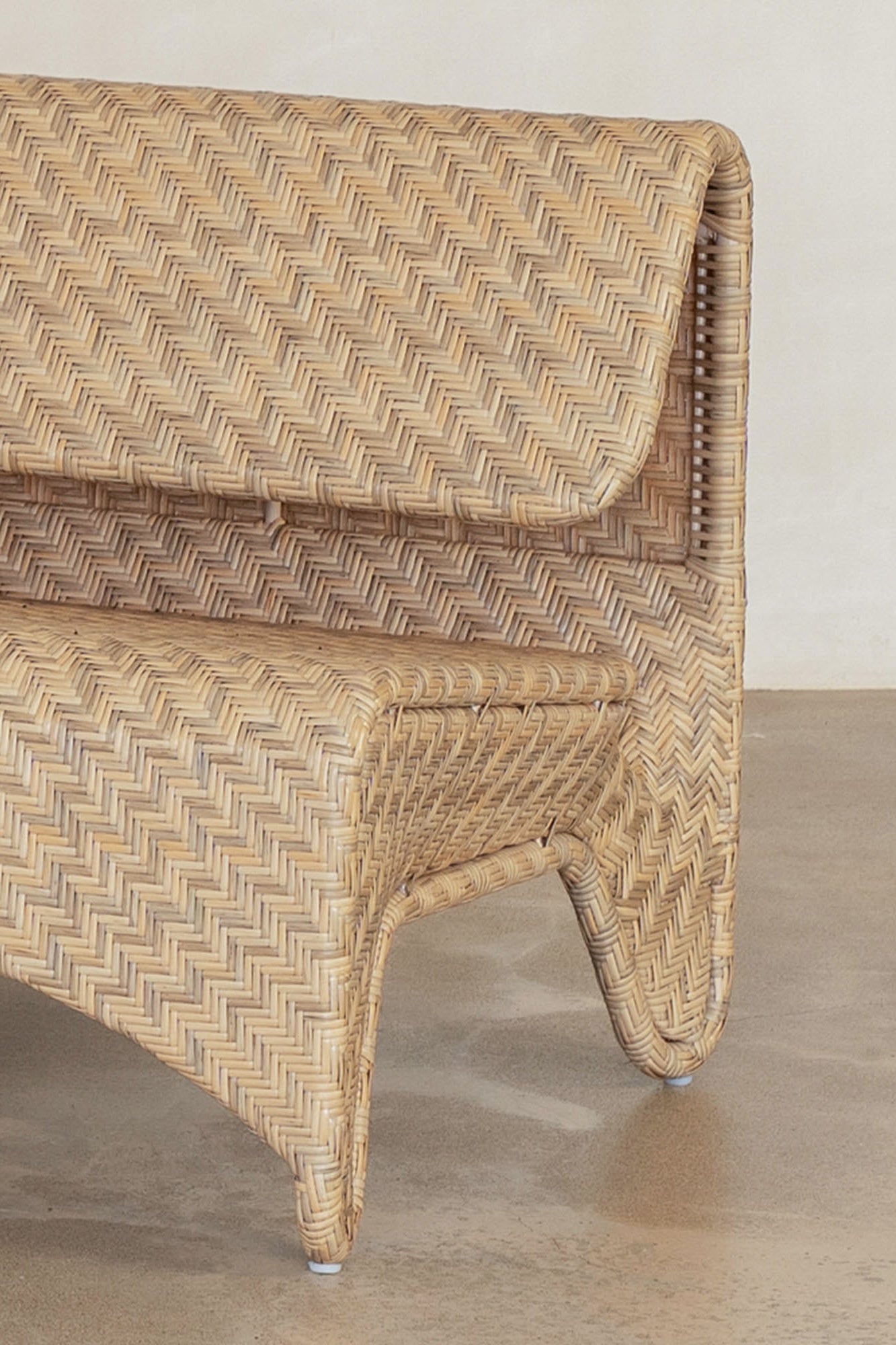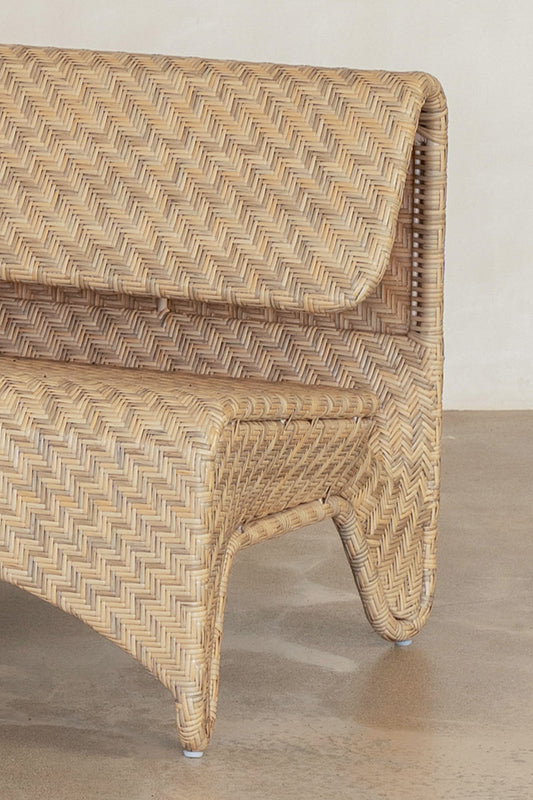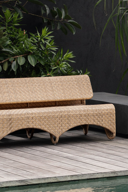 Create a relaxed and chic space with the soft curves of the Zaza Outdoor Sofa. Made from outdoor synthetic weave in a natural hex, with a lightweight and durable aluminium frame.