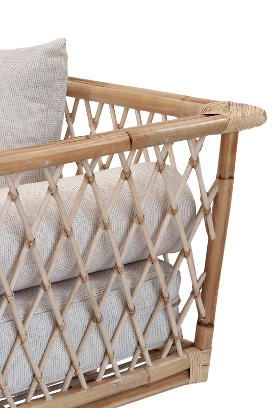 - Natural finish cane frame with Bahama Sands upholstered seat cushion.