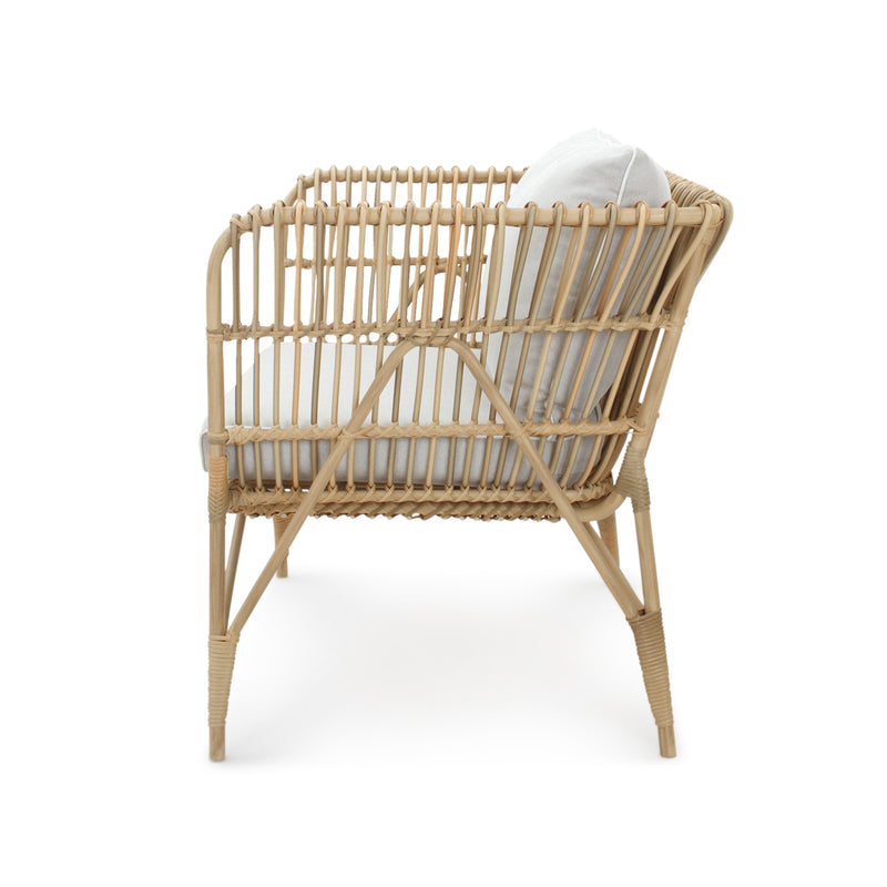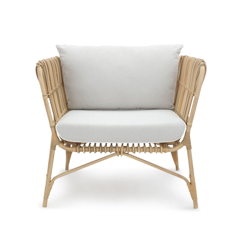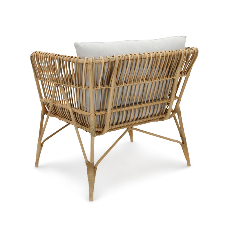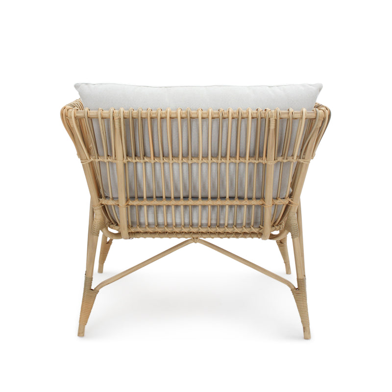 This stylish Sienna Outdoor Chair will upgrade your outdoor space or alfresco area. Crafted from outdoor synthetic weave with lightweight aluminium frame for year-round use. Featuring an intricate weave design with cushions in water-resistant sunproof Palazzo143 fabric with white piping detail, and removable covers that are conveniently washable.