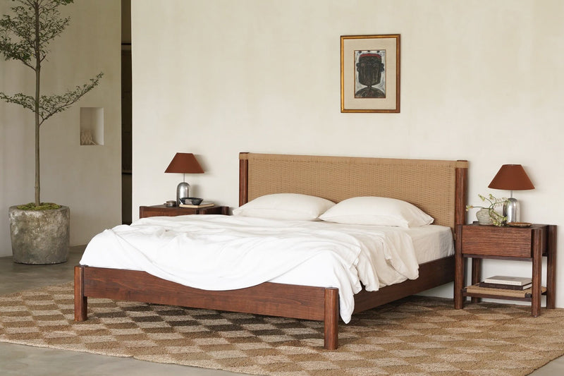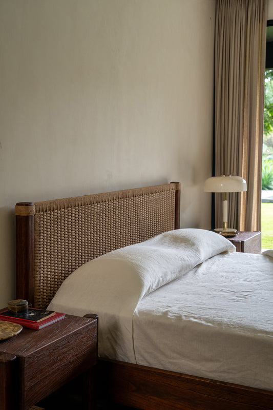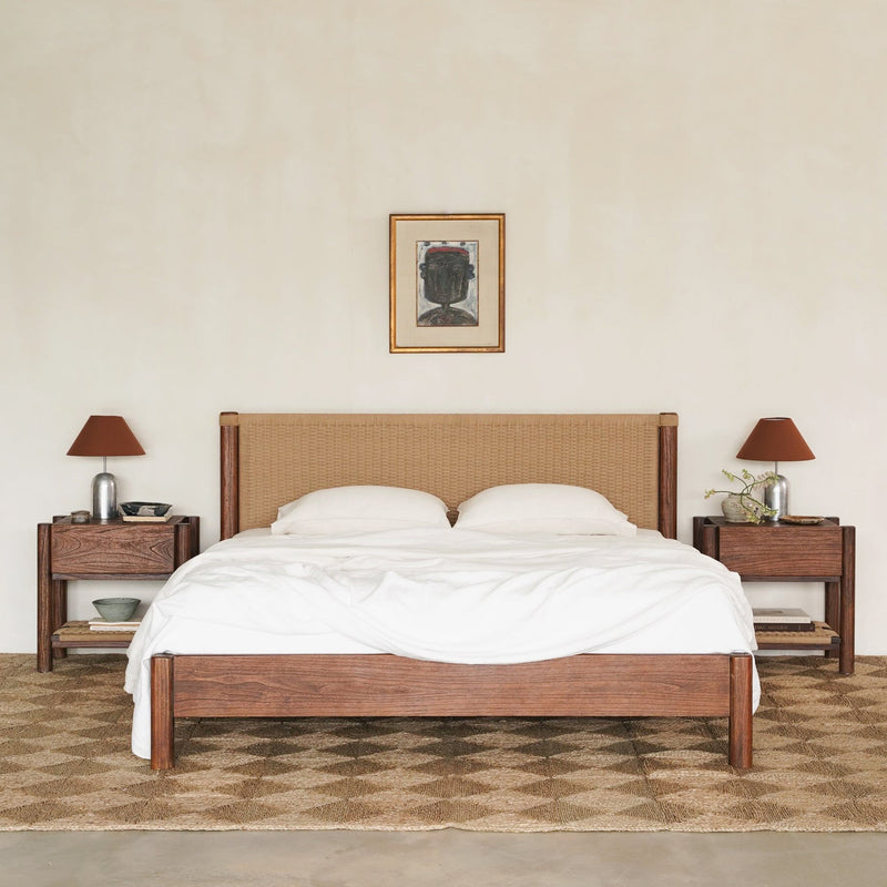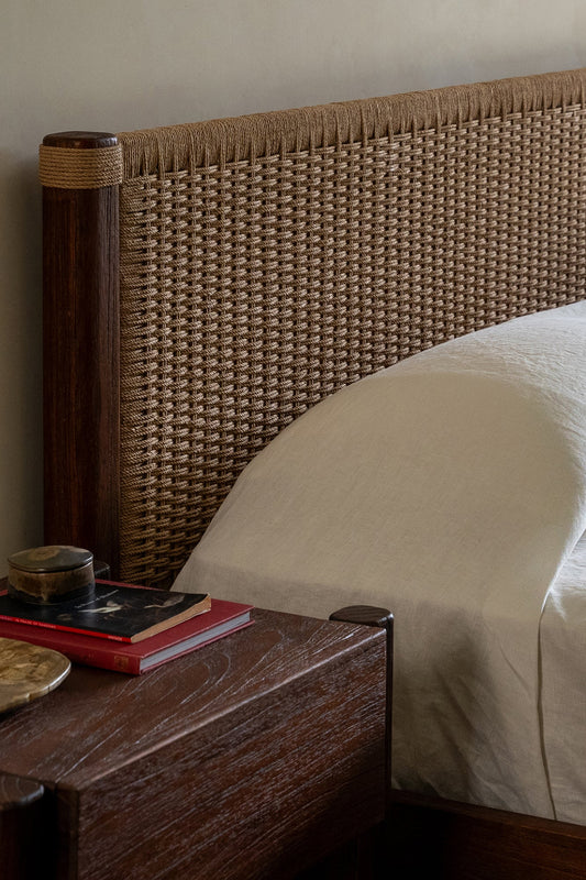 The Holly Bed is crafted from solid timber, defined by its clean lines and softly rounded frame. Paper cord woven headboard introduces natural texture and warmth, creating a balanced contrast against the timber base. Designed by and exclusive to Empire Home, it brings considered detail and quiet character to the bedroom.