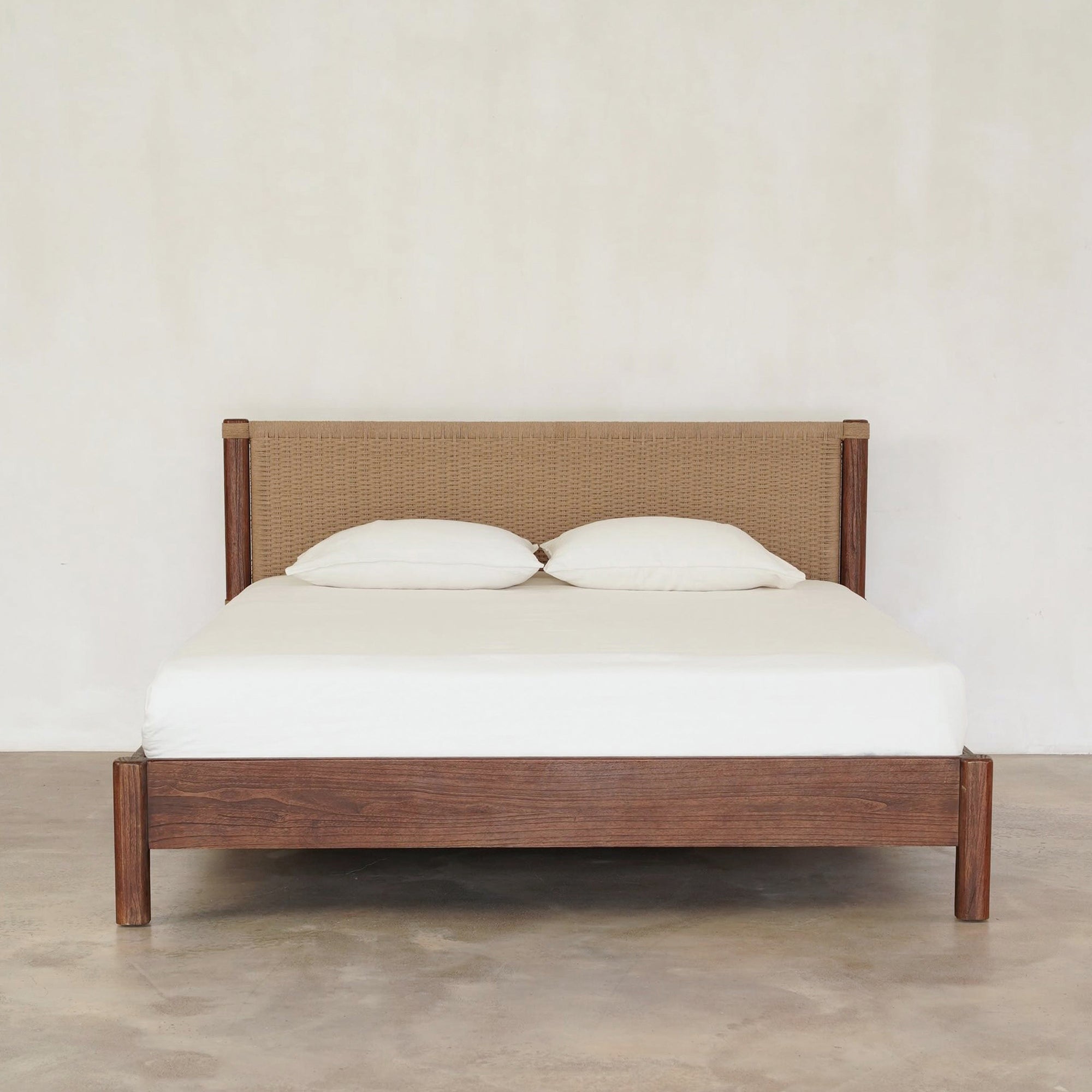 - Tightly woven paper cord headboard crafted from durable, paper-textured synthetic fibre.