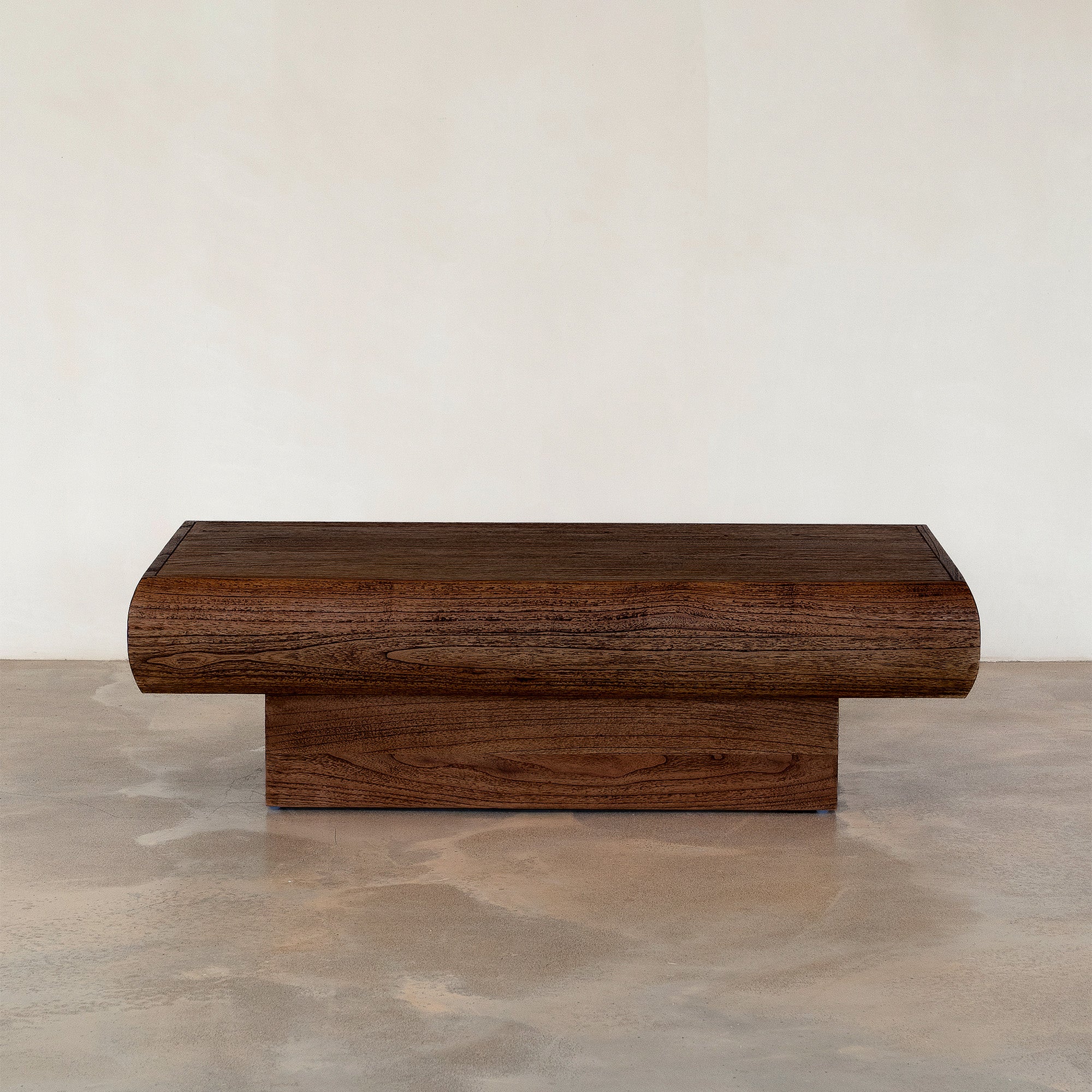 The Pierce Rectangular Coffee Table is defined by its bold, sculptural silhouette and rich rustic walnut finish. Featuring softly curved edges and a solid central base, its elongated form creates a strong yet balanced presence in the living space. The generous rectangular tabletop offers ample surface area while maintaining a grounded, architectural feel. A timeless coffee table design suited to both contemporary and classic interiors.