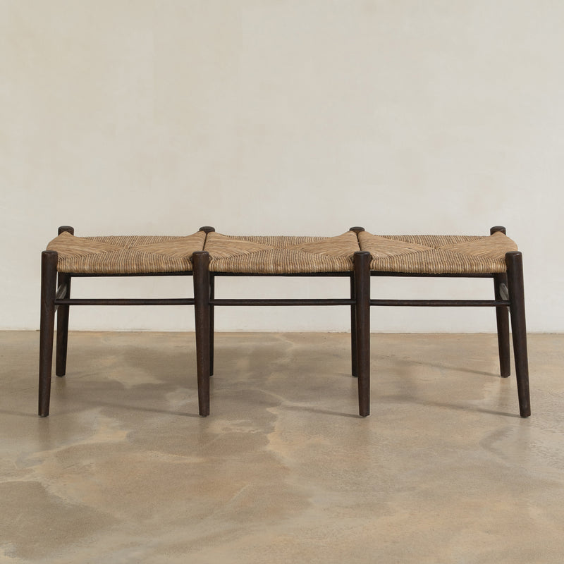 Stylish with a touch of texture, the Rush Bench is made from solid mindi wood in Rustic Walnut finish with handwoven rush seat. Can be used at your bed end, in the hallway or even in your lounge area for additional seating.