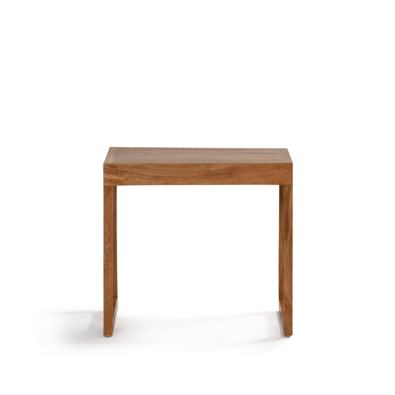 Constructed in solid mango wood with natural sealed finish. Simple yet modern shape with multiple functions and featuring open side panels, available in three different sizes. They can all be nestled within each other or purchased separately.