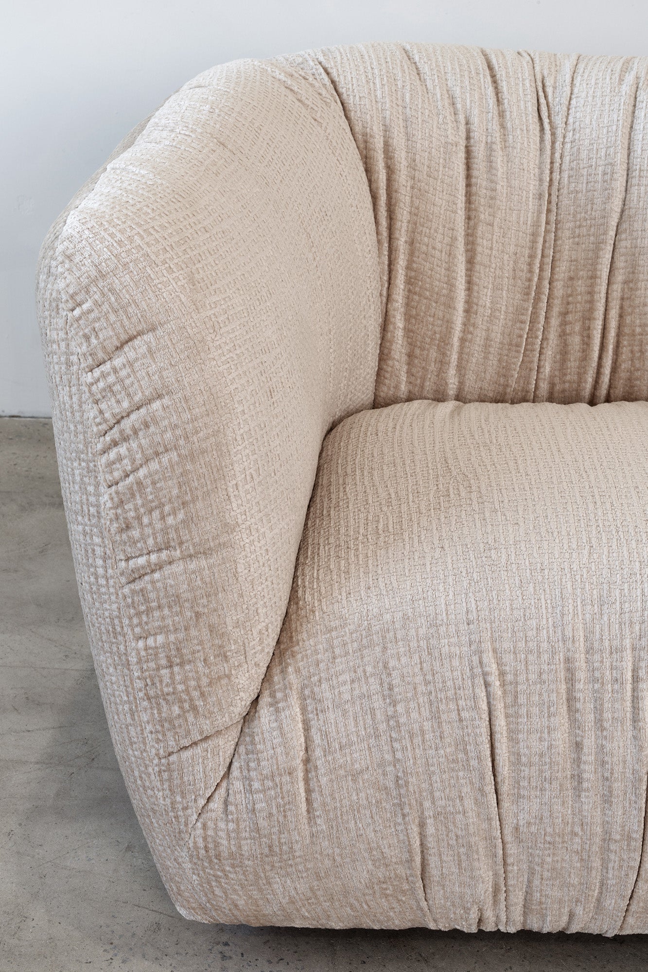 A sculptural take on 70s-era lounging, the Astoria Chair is an ultimate blend of retro charm and modern comfort. With its generous curves, cloud-like cushioning, and softly textured upholstery, it delivers the perfect balance of nostalgia and modern ease. Perfect for those who love to lounge in elevated comfort, the Astoria chair is a statement in effortless style.