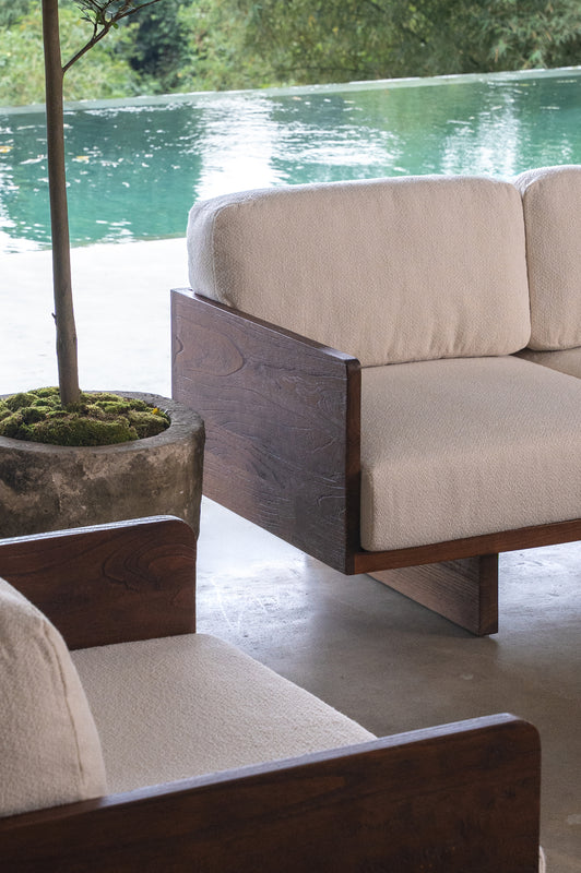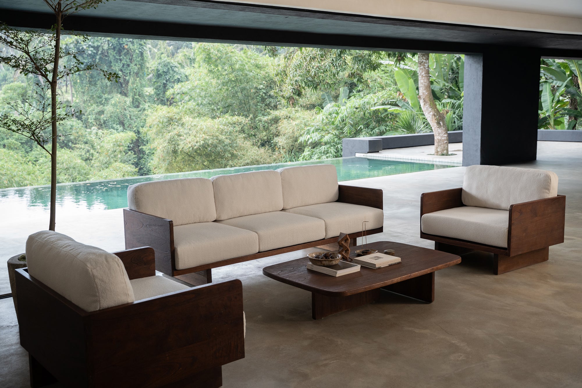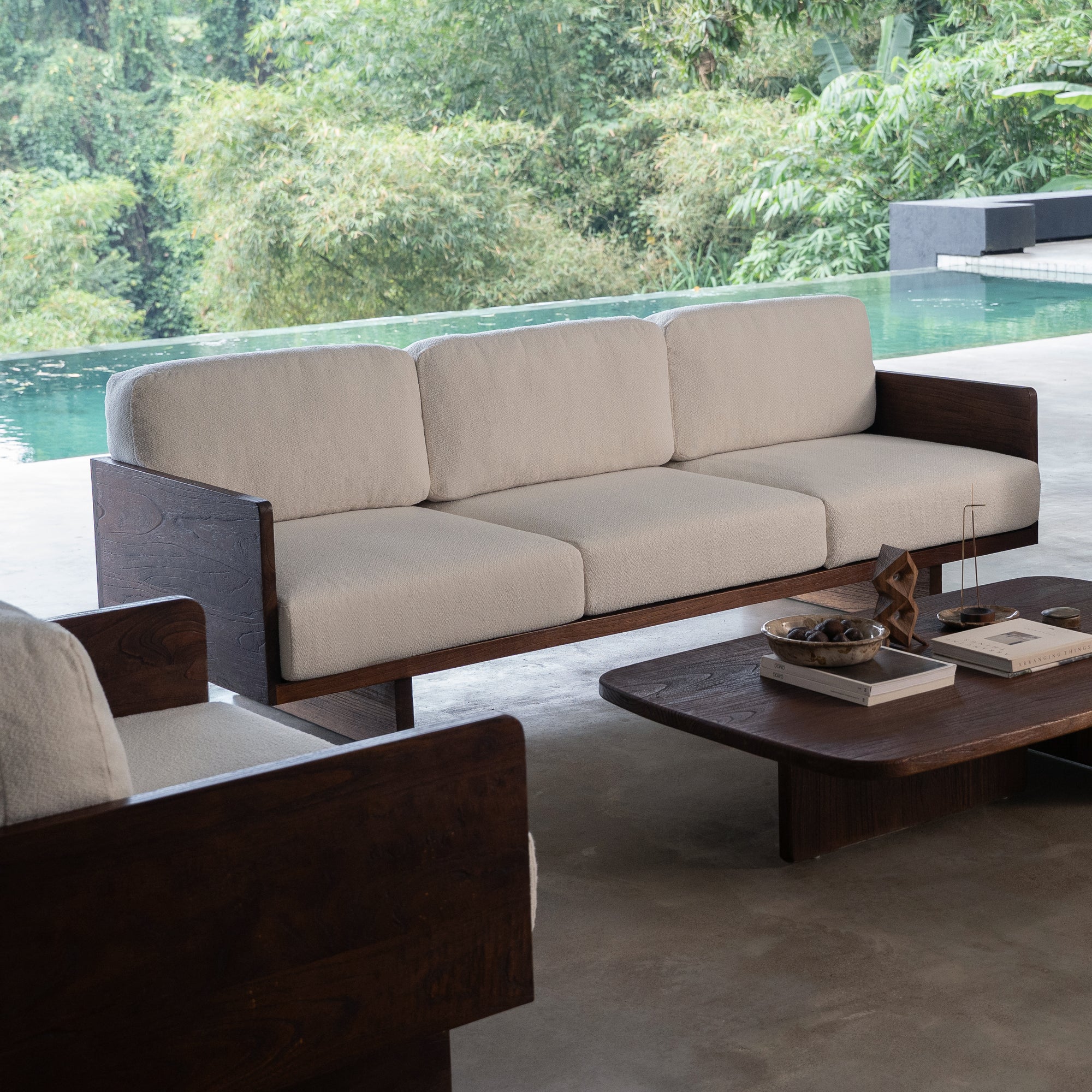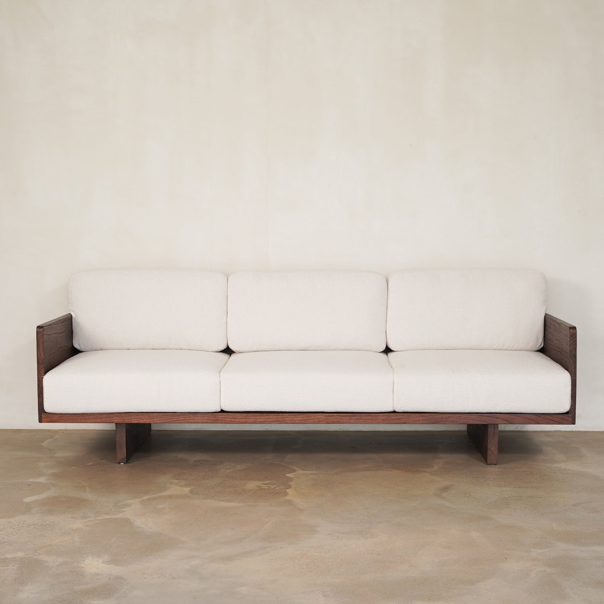 Defined by clean lines and a low, grounded profile, the Platform Sofa features a rich rustic walnut finish that brings warmth and depth to the living space. Generously cushioned seats and backrests create an inviting place to relax, while the structured timber frame offers a balanced, architectural presence. A timeless sofa design that sits comfortably in both contemporary and classic interiors.