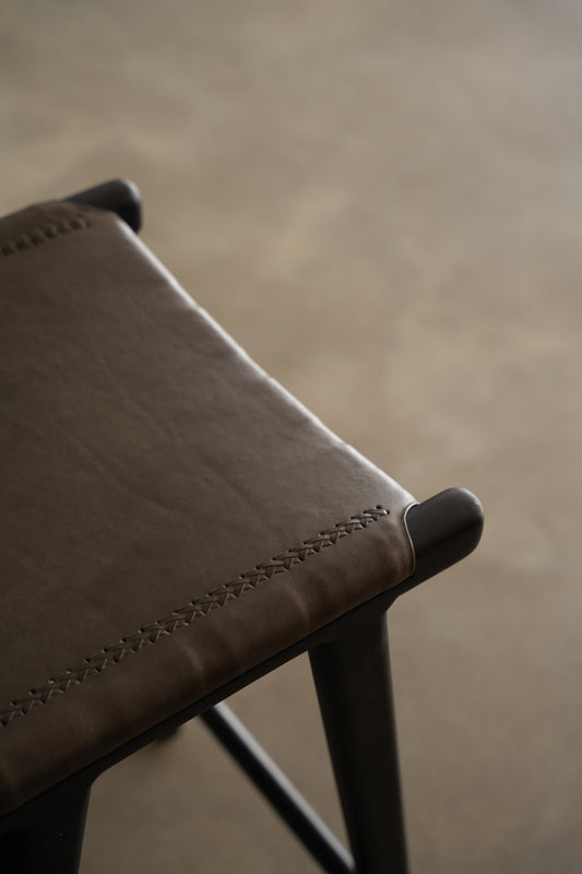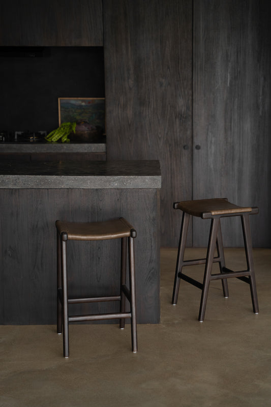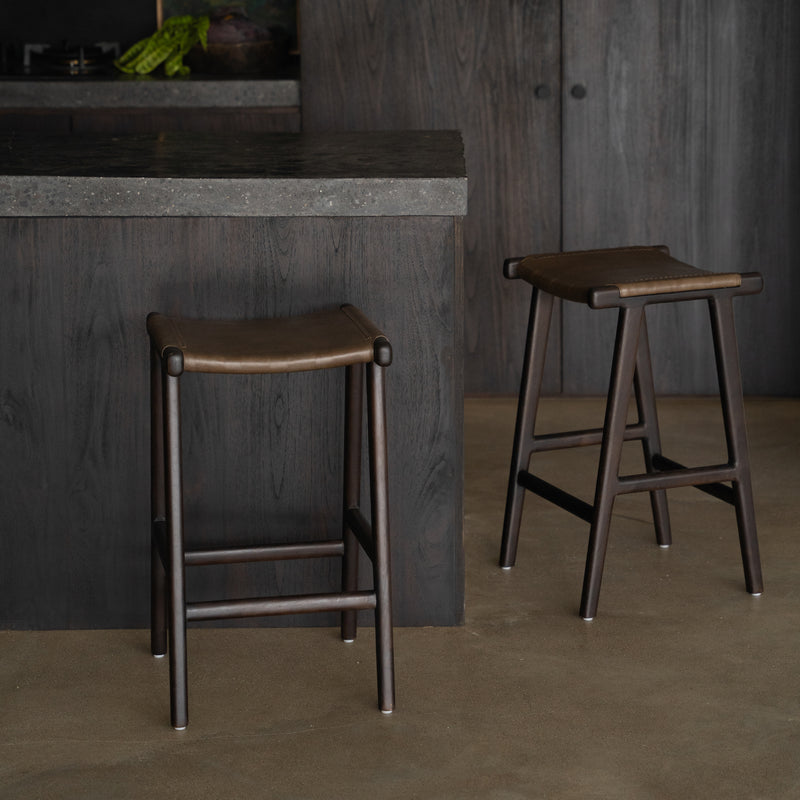 Made with solid wood frame and Espresso brown leather seat for added comfort and support. Perfect addition for any bar or kitchen island.