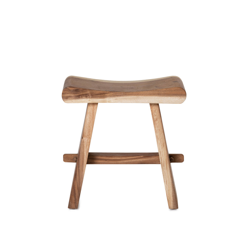 The Kano small stool is constructed from meh wood in a raw finish. Colours/finishes between items may vary and some slightly cracking can occur, due to the natural nature of the timber.