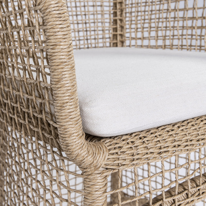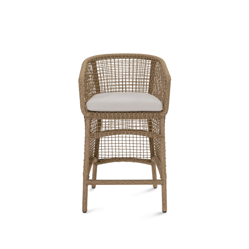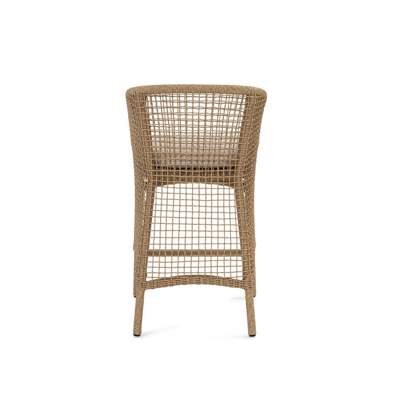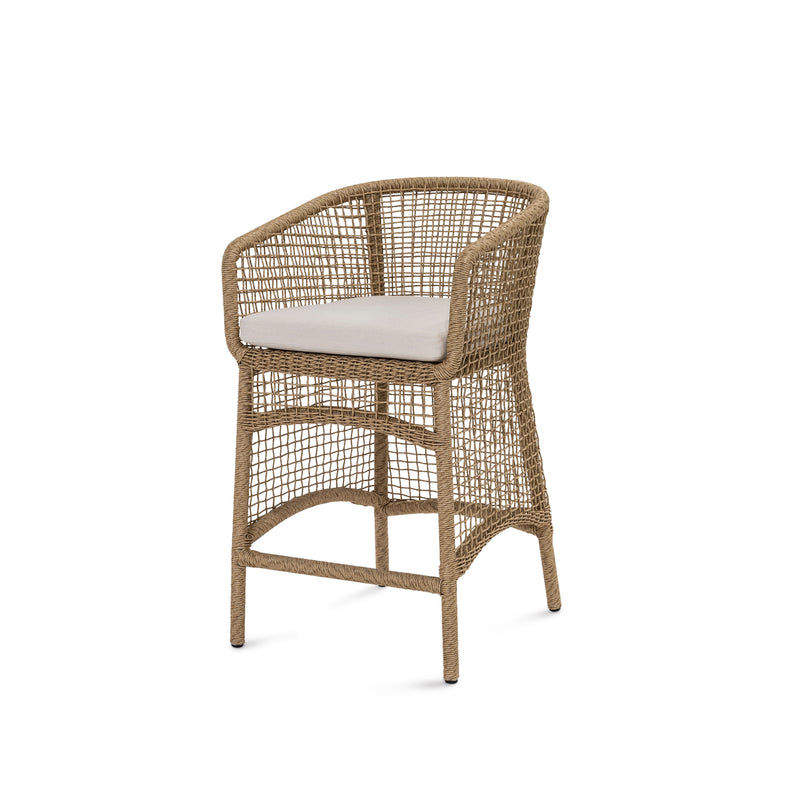 The Polo Bar Stool combines contemporary design with coastal ease. Built on a durable aluminium frame, it features a handwoven synthetic fibre seat and backrest in a seagrass-style weave, paired with a waterproof Bahama Sand padded seat cushion for added comfort. Stylish, lightweight, and resilient, it's designed for both indoor and outdoor use.