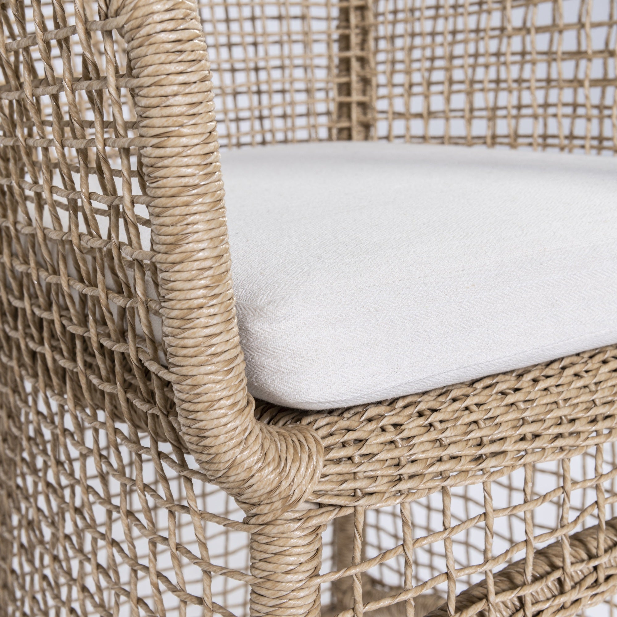 - Aluminium frame with a handwoven synthetic seagrass-style seat and backrest