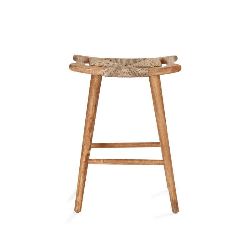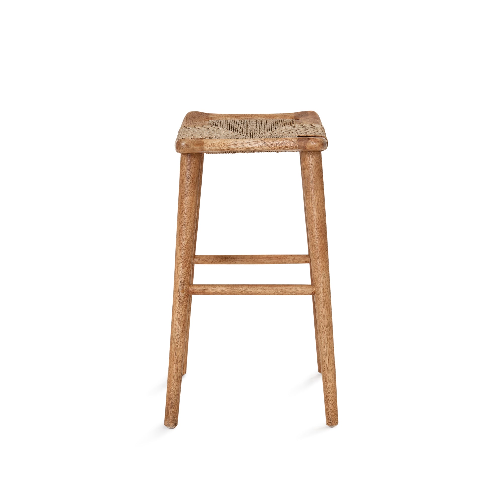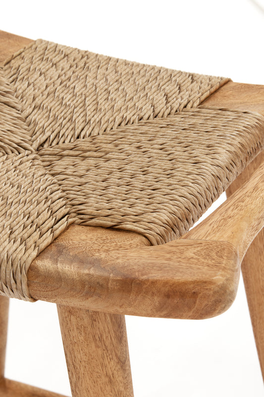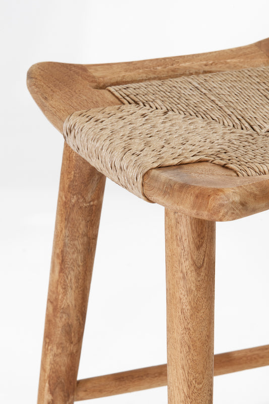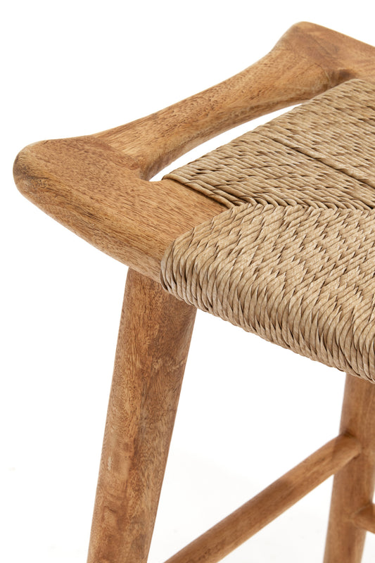 The Republic Bar Stool is crafted from solid mango wood in a rustic matte finish. Featuring a handwoven synthetic fibre seat in a seagrass weave, it combines the warmth of natural texture with enhanced durability. Finished with convenient side handles, it's a timeless piece for relaxed dining or casual entertaining.