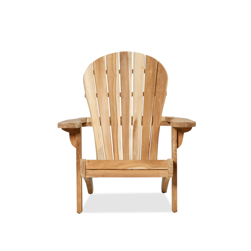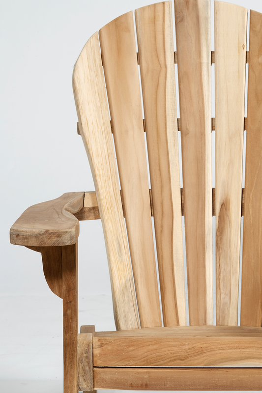 Constructed from durable Teak hardwood in a natural finish, with a sanded smooth surface. The Deco Pool Chair has a curved top and arms and a slightly angled back.
