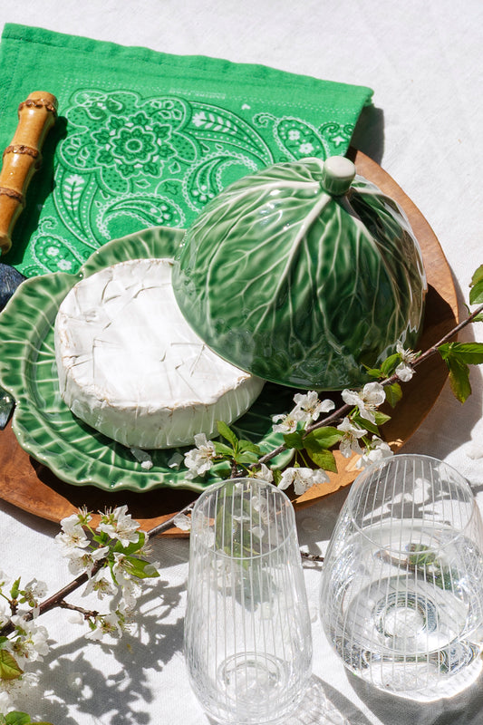 Crafted in glossy green ceramic with delicate cabbage-leaf detailing, this piece blends playful design with timeless appeal. Perfect for picnics, garden lunches, or everyday dining, it brings an effortless sense of nostalgia and joy to your table.