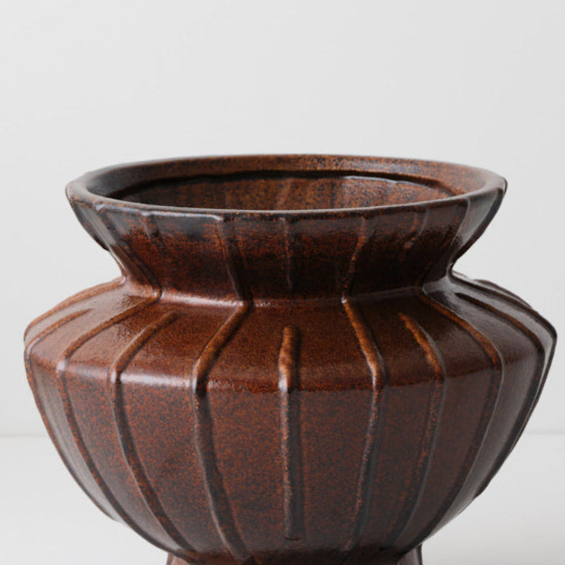 The Form Pot in Chocolate features a low, rounded silhouette with a rich glazed finish, bringing warmth and material depth to the home. Its softly structured form introduces subtle texture and contrast, designed to layer effortlessly alongside marble, glass and natural materials, whether styled with generous floral arrangements or as a standalone piece.