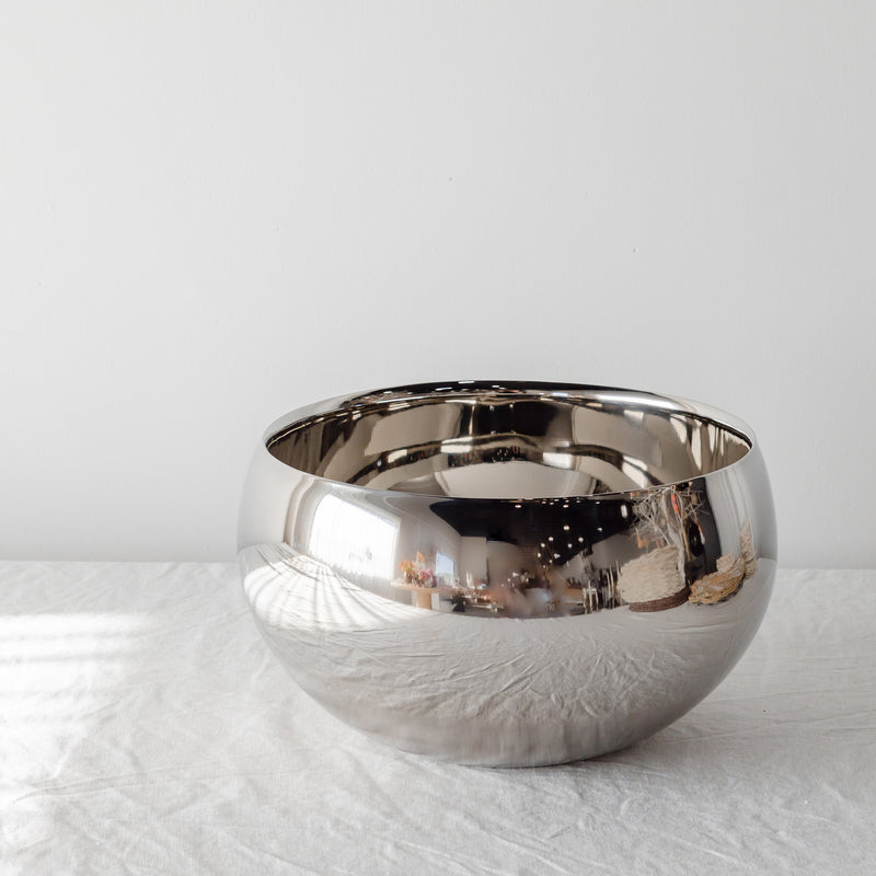 Make a statement with this stainless steel champagne bucket. Its bulbous shape and shiny chrome exterior is an elegant yet bold piece that will suit any entertaining space.