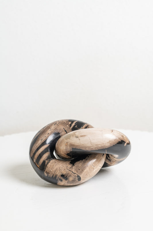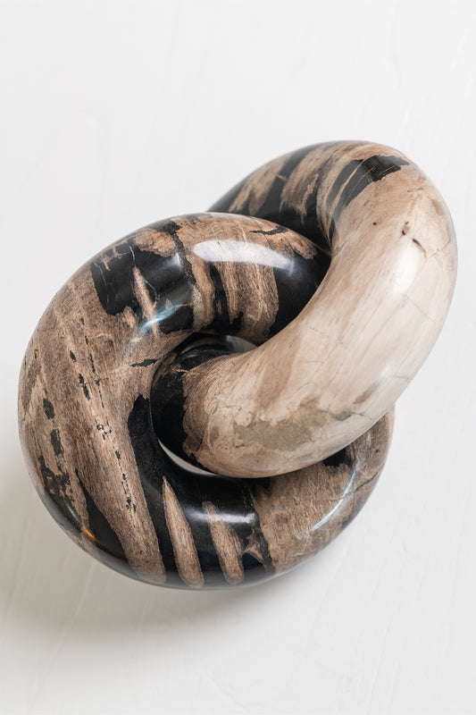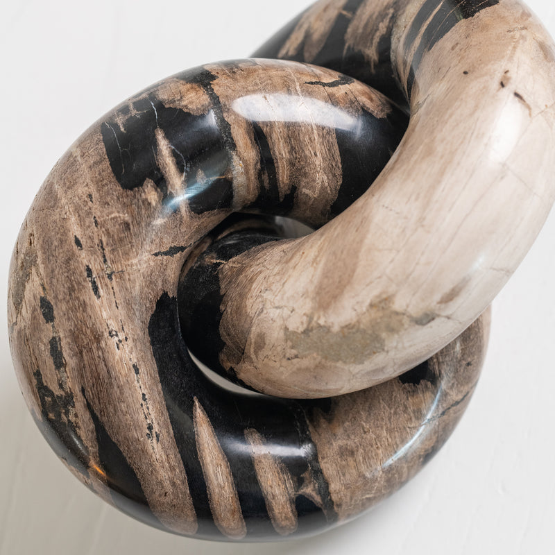 Modern and simple design, the Jambu chain sculpture is made from petrified wood in a natural polish finish.