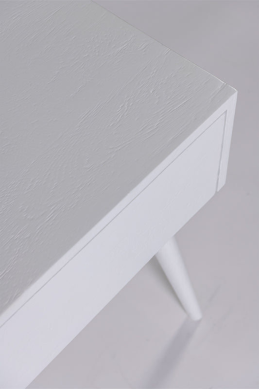 The Amsterdam bedside without shelf has one drawer with four tapered legs. Built from solid mango wood in white finish.