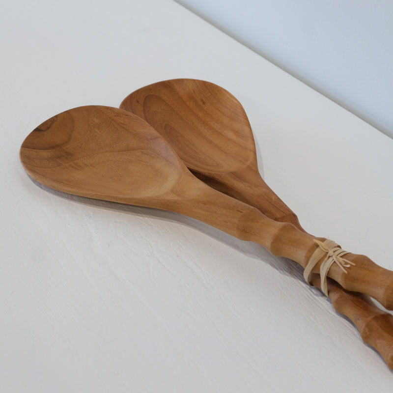 Perfect for serving fresh salads and sharing meals, these teak salad servers combine everyday practicality with timeless style with their bamboo style handle. Sold in a set of two.