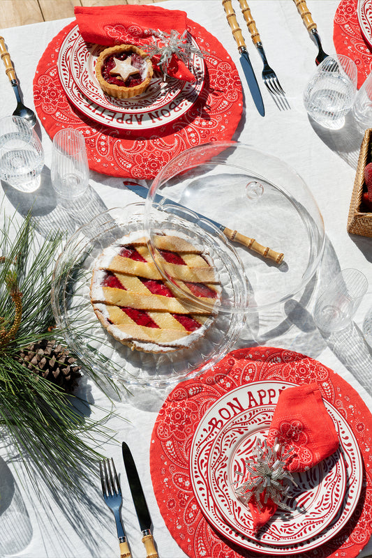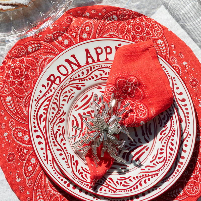 Radiant and full of character, the Bandana Serviette in Red brings warmth and vibrancy to the table. Its classic paisley motif, printed on soft cotton, adds a spirited accent that feels both nostalgic and fresh.