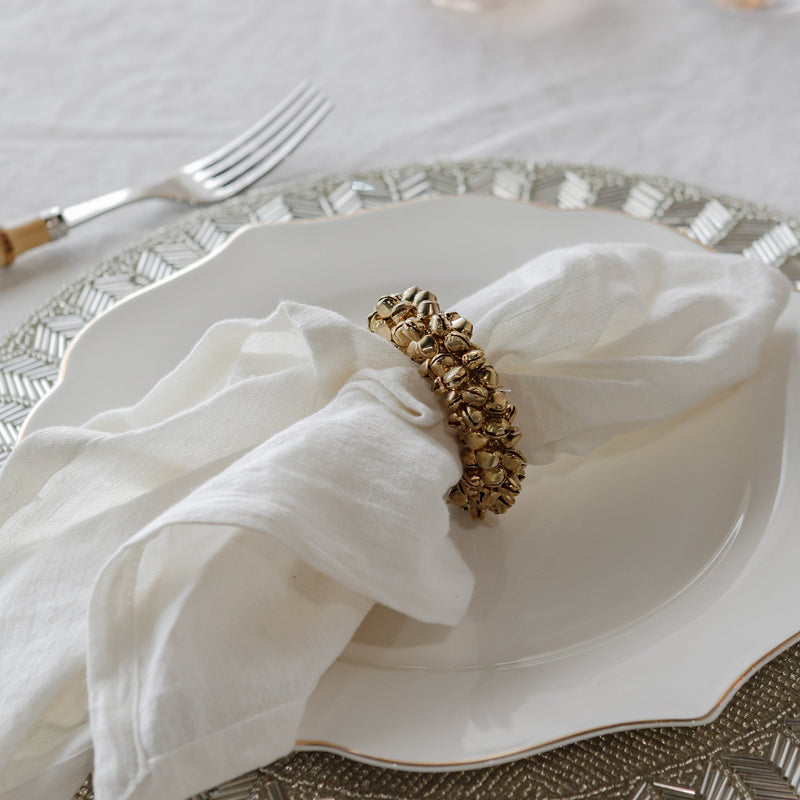 Handcrafted with exquisite beaded glass on cotton, every placemat, runner, and napkin ring boasts one-of-a-kind craftsmanship, featuring intricate patterns that sparkle and elevate your holiday meals. Perfect for layering, the Bella Napkin Ring adds warmth, charm, and a touch of elegance to your table.