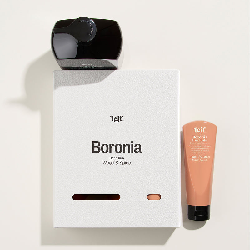 This perfect Leif gift set pairs two Boronia products, a great duo of hand wash and hand balm. Featuring aromatic fragrances and gentle ingredients.