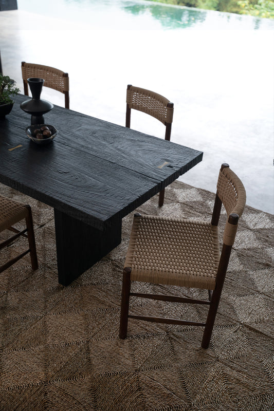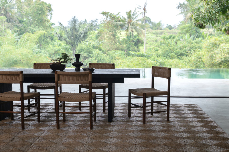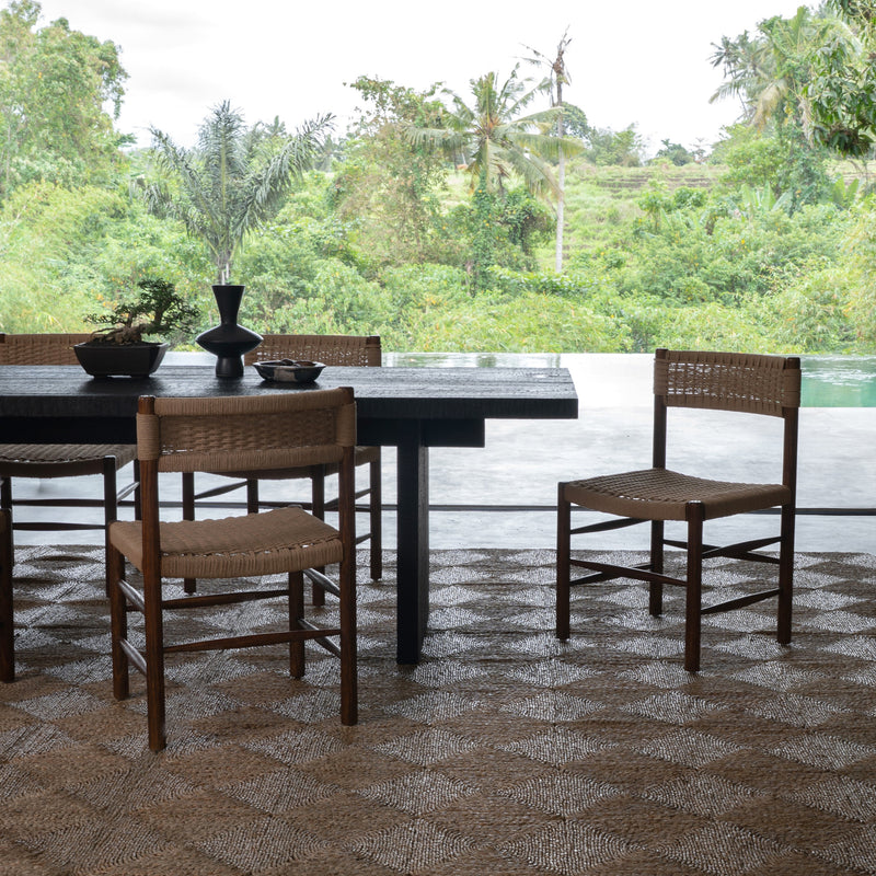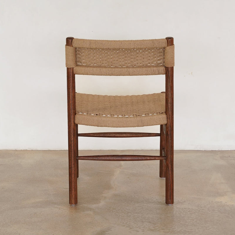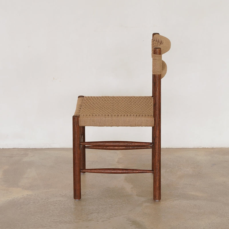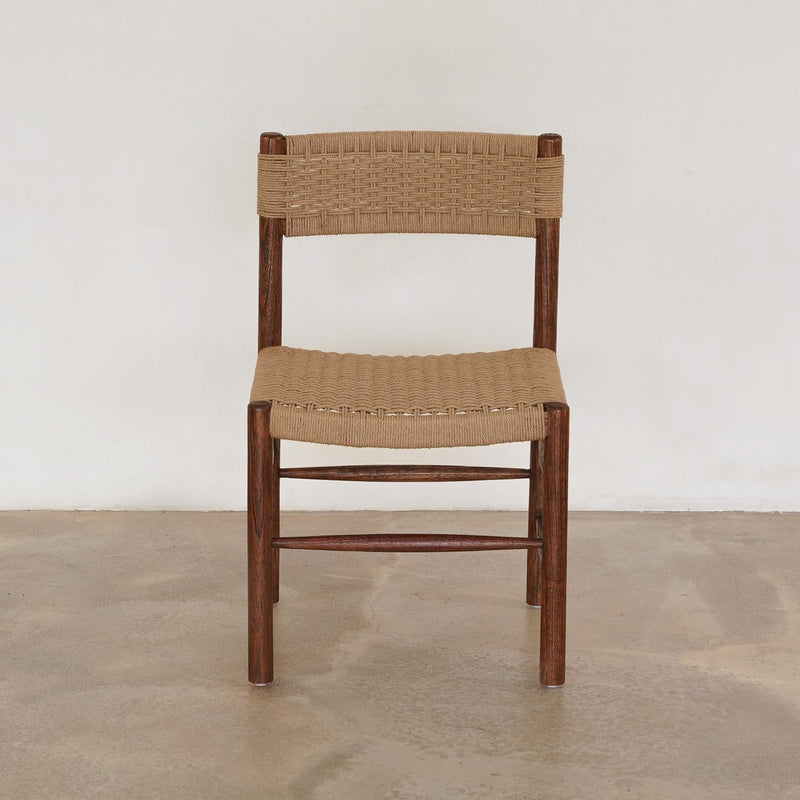 The Bruce dining chair blends our favourite rustic walnut finished wood with a tight paper weave seat and curved backrest, adding a touch of style and comfort to any dining room.