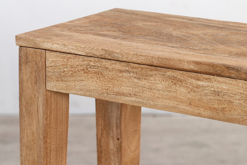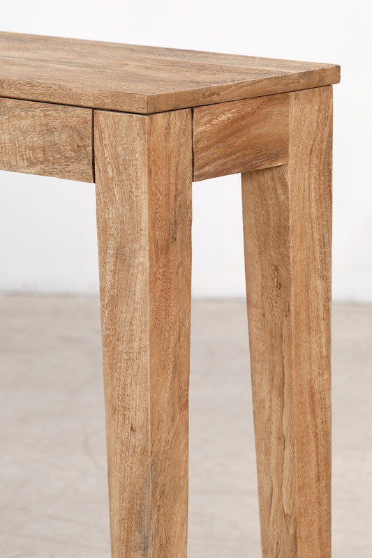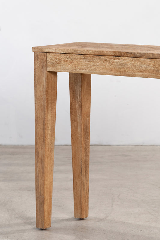 The Buddha Console is defined by its clean lines and solid timber construction, offering a refined and understated silhouette. A streamlined top and square legs create a balanced, architectural form that highlights the natural grain. Simple and versatile, it brings warmth and quiet structure to entryways or living spaces.