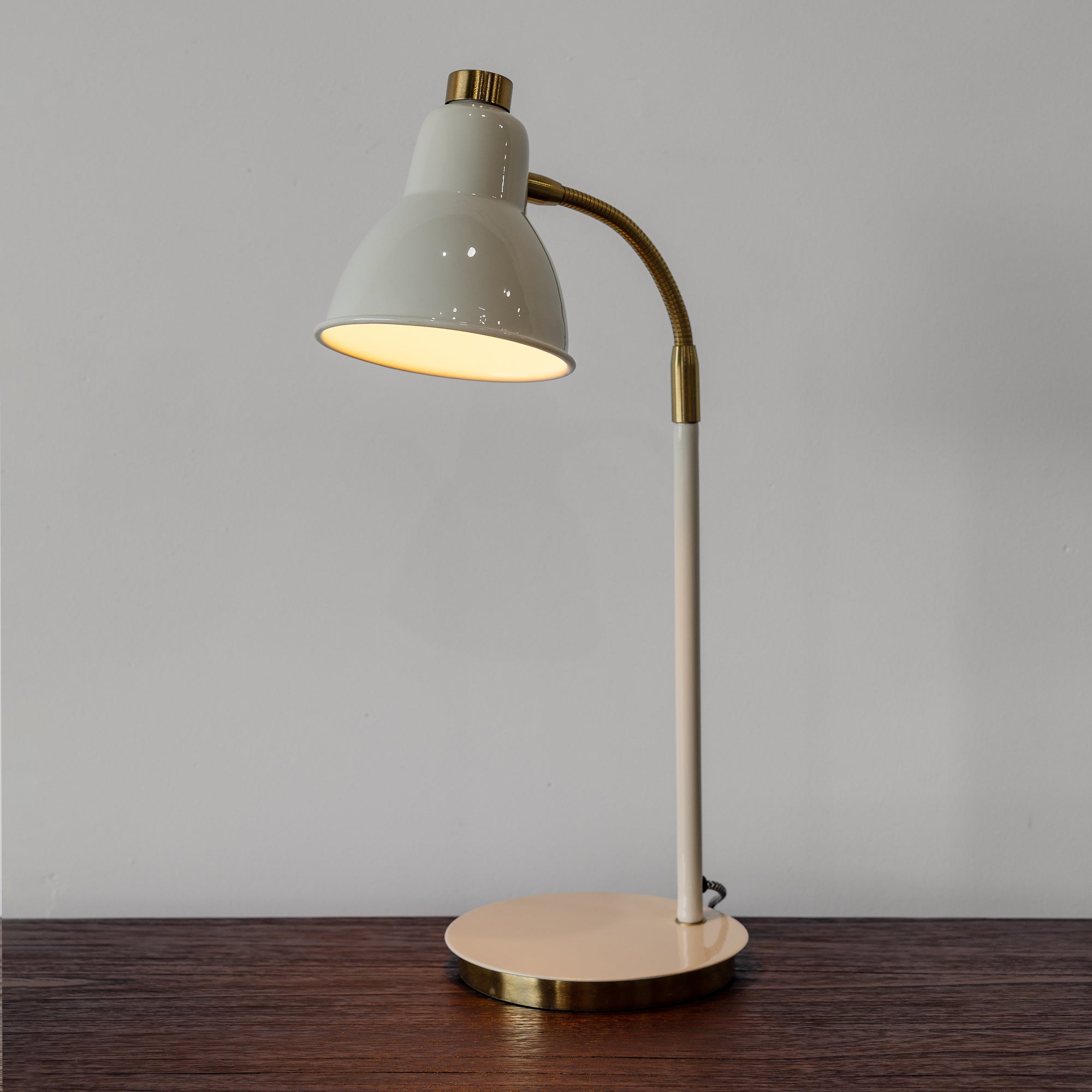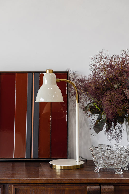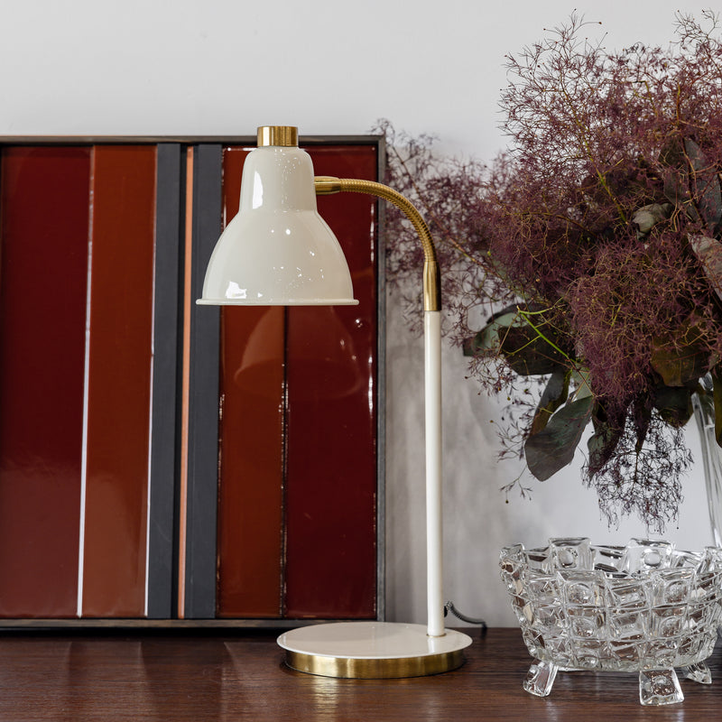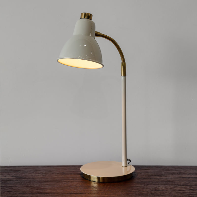 A soft and sophisticated lighting accent, the Celeste Table Lamp in Putty features a gently curved shade paired with warm brass detailing and an adjustable arm for practical illumination. Its neutral finish brings a sense of calm and versatility, making it easy to style across a range of interiors.