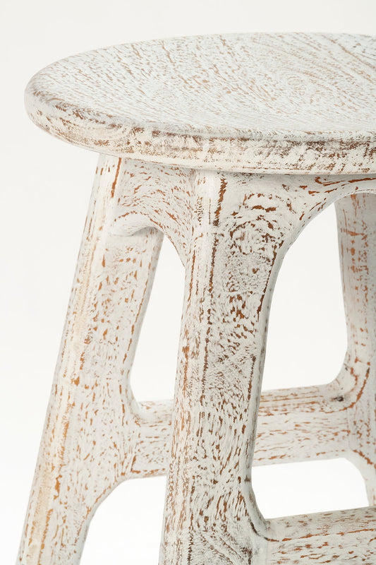 Made from solid mango wood with a Old Rustic White Wash finish. Available in 65 cm or 75 cm height.