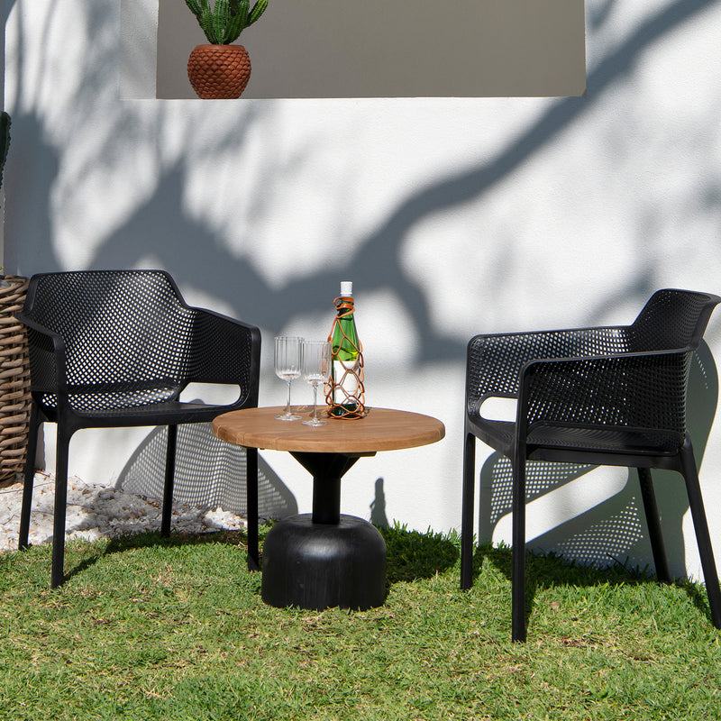 Introducing the Ginko side table range. Available in two sizes, these tables look beautiful on their own, and even more so when nested together. Crafted from a slatted teak top and black teak base, they are long-lasting and durable for outdoors.