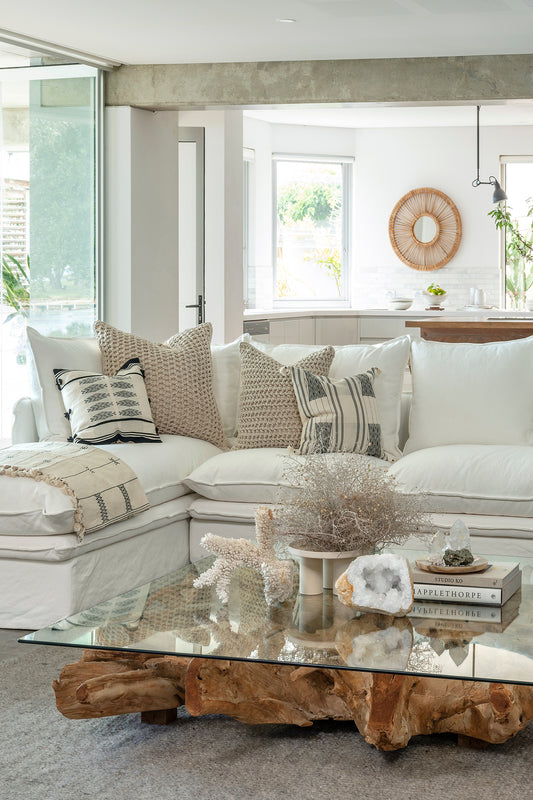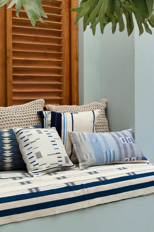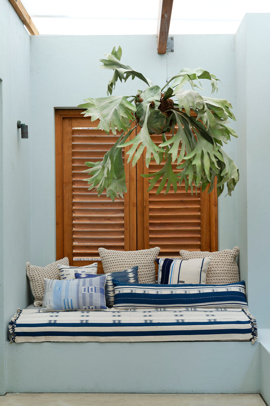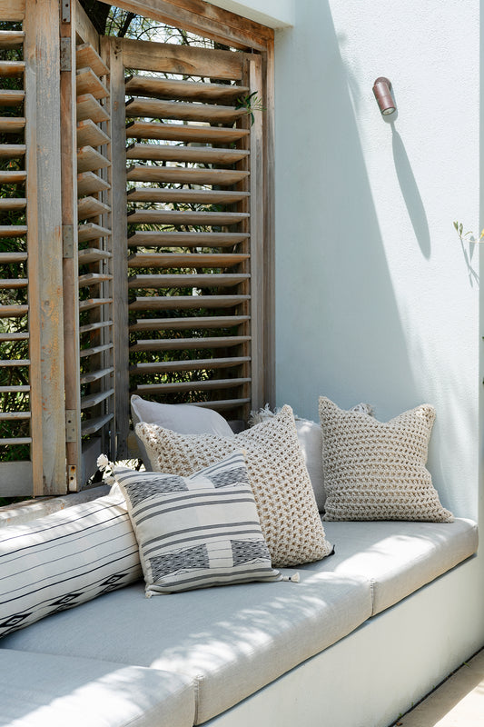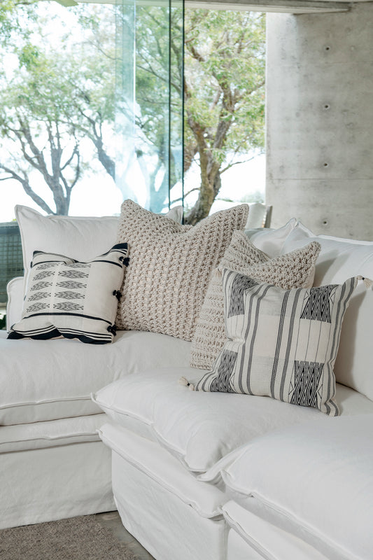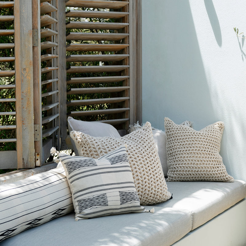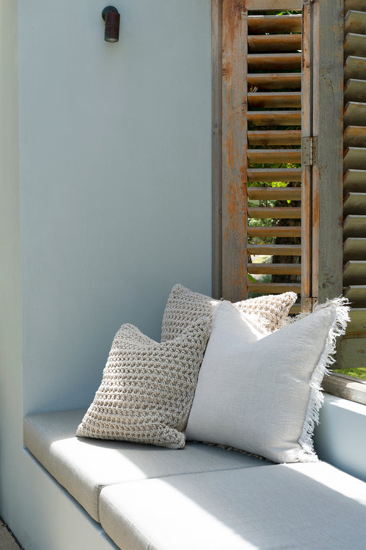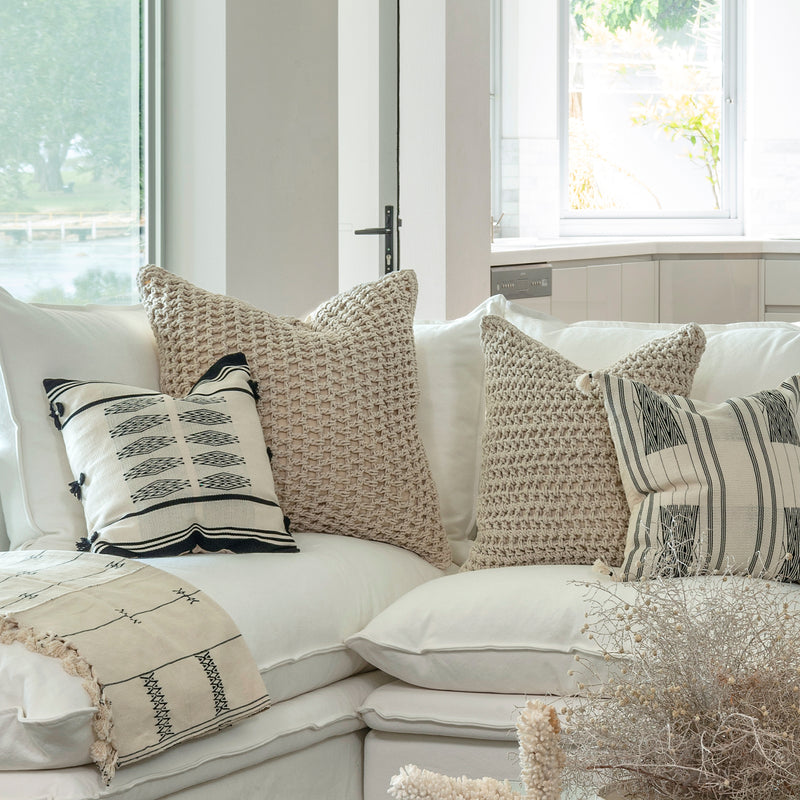 Our Empire exclusive Giro rope cushion featuring a chunky, textured rope design on the front. Each cushion comes filled with 100% feather insert for superior comfort and plump appearance.