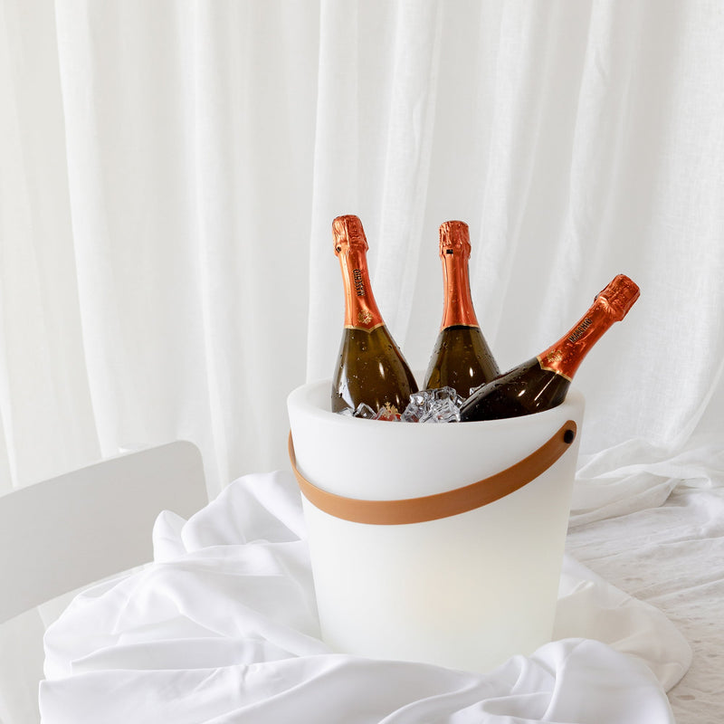 Illuminate your outdoor space with our Iggy cooler bucket, with both solar power and USB charge, its perfect on your table setting keeping your favourite drinks cool while lighting up the space.