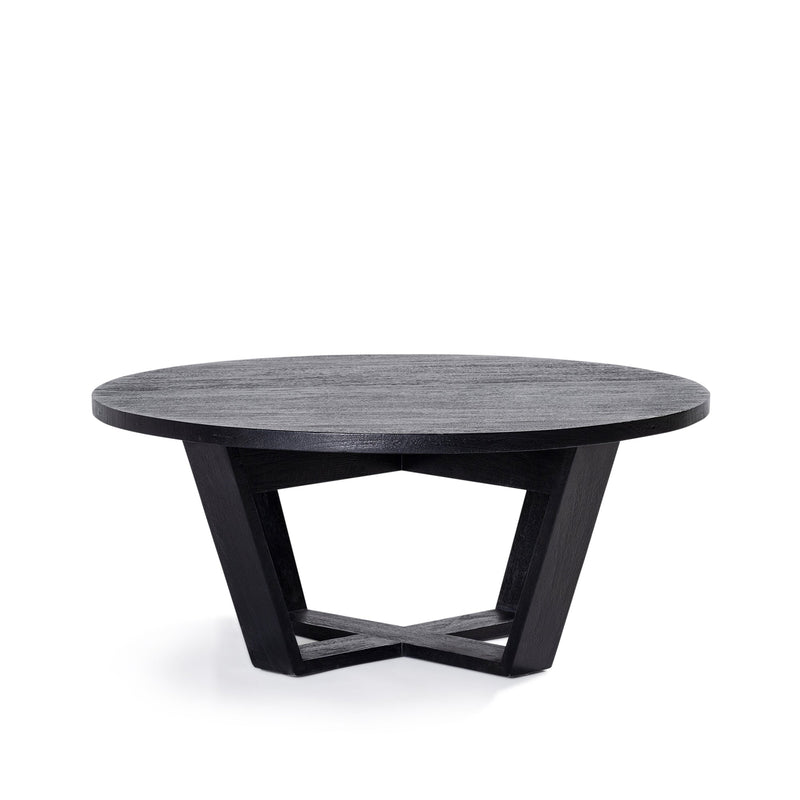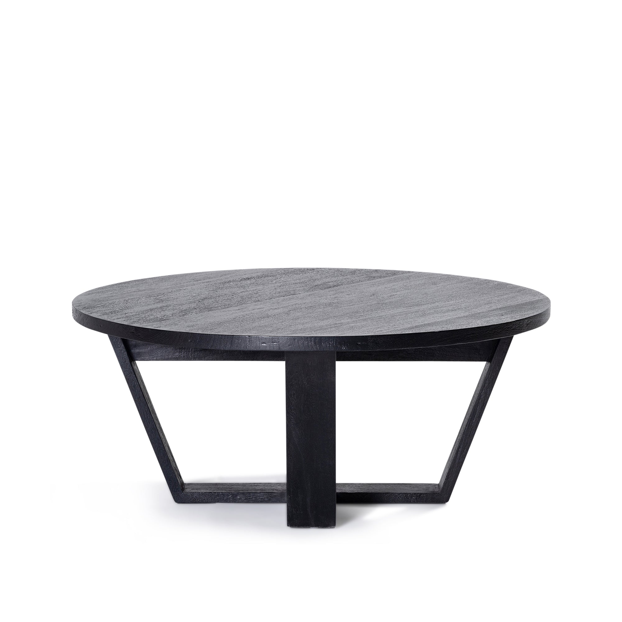 Built from solid mango wood with a Black finish. Round top and tapered geometric shape base. Available with solid wood top or marble top.