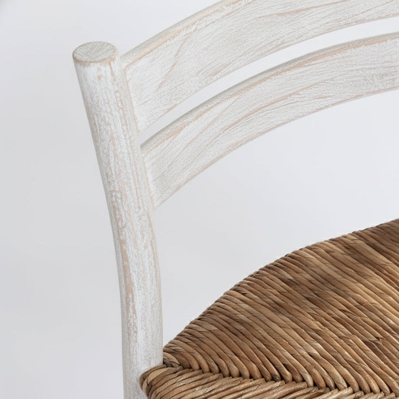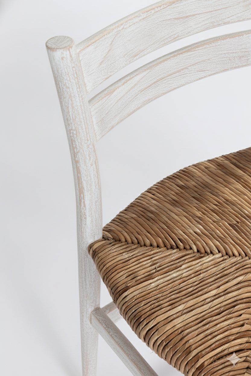 The Kodak Chair brings timeless charm with a relaxed, coastal feel. Crafted from solid mango wood in a rustic white wash finish, it features a handwoven rush wicker seat and a gently curved backrest for both comfort and style. Designed to complement a variety of interior styles, it’s a versatile addition to any dining or occasional setting.
