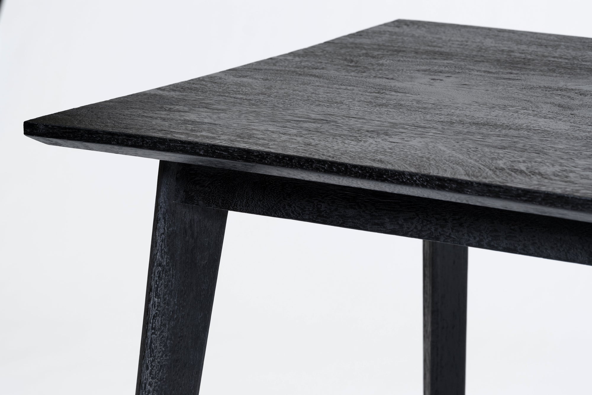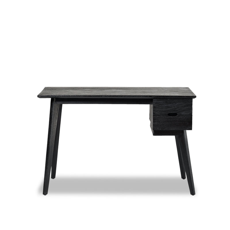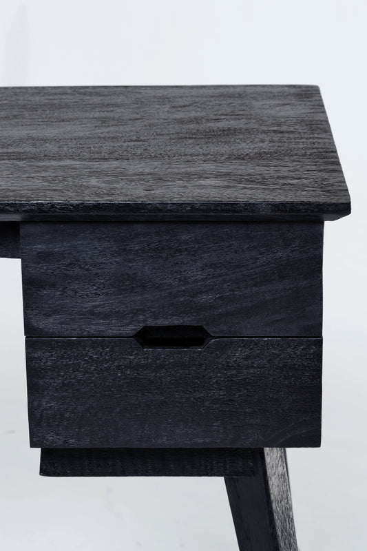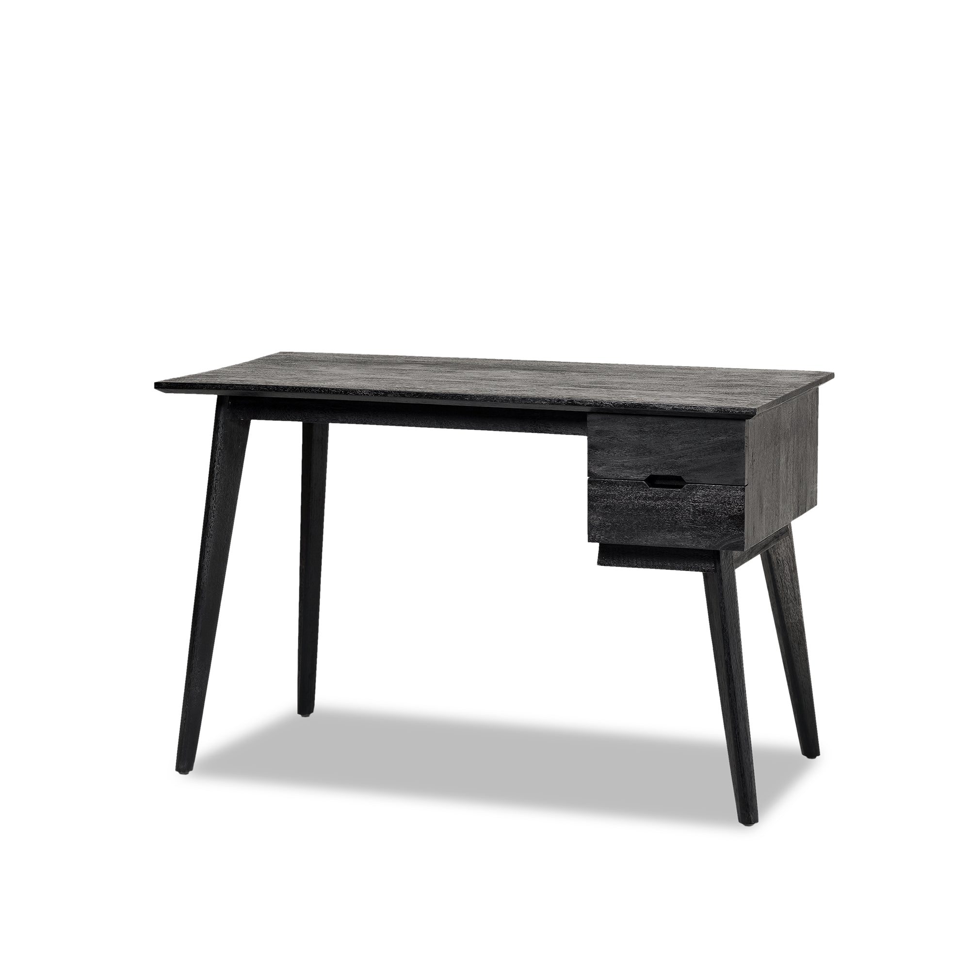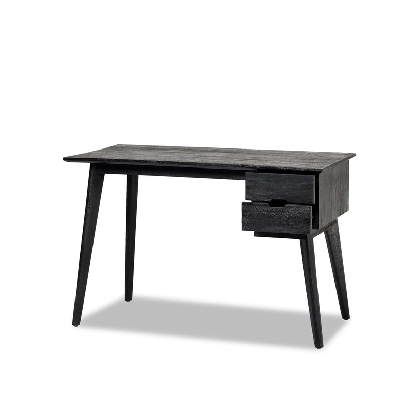 Built from solid mango wood with Black finish. This desk has 2 drawers and tapered legs.