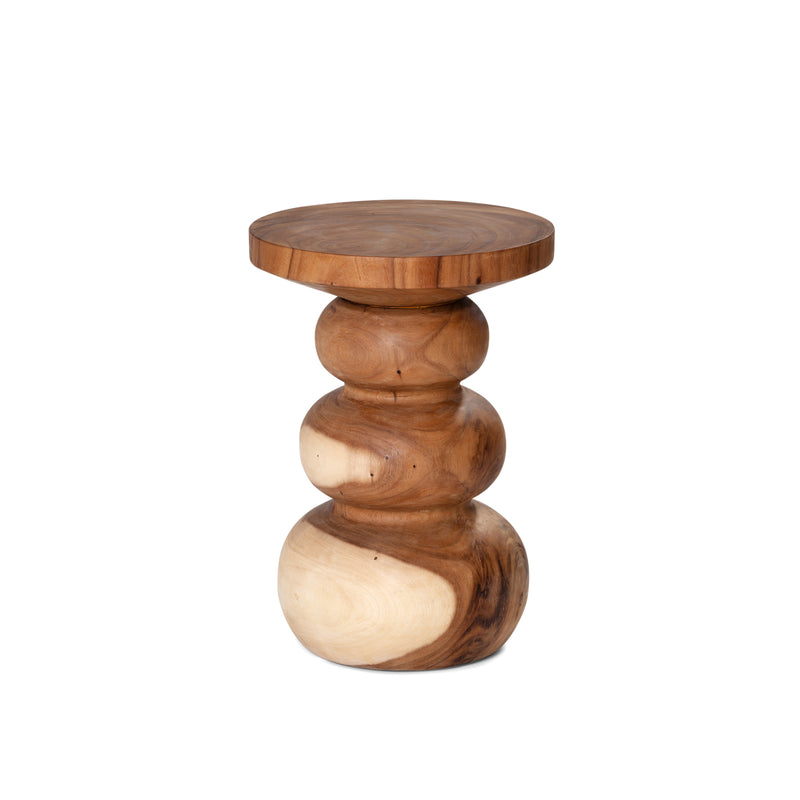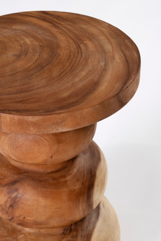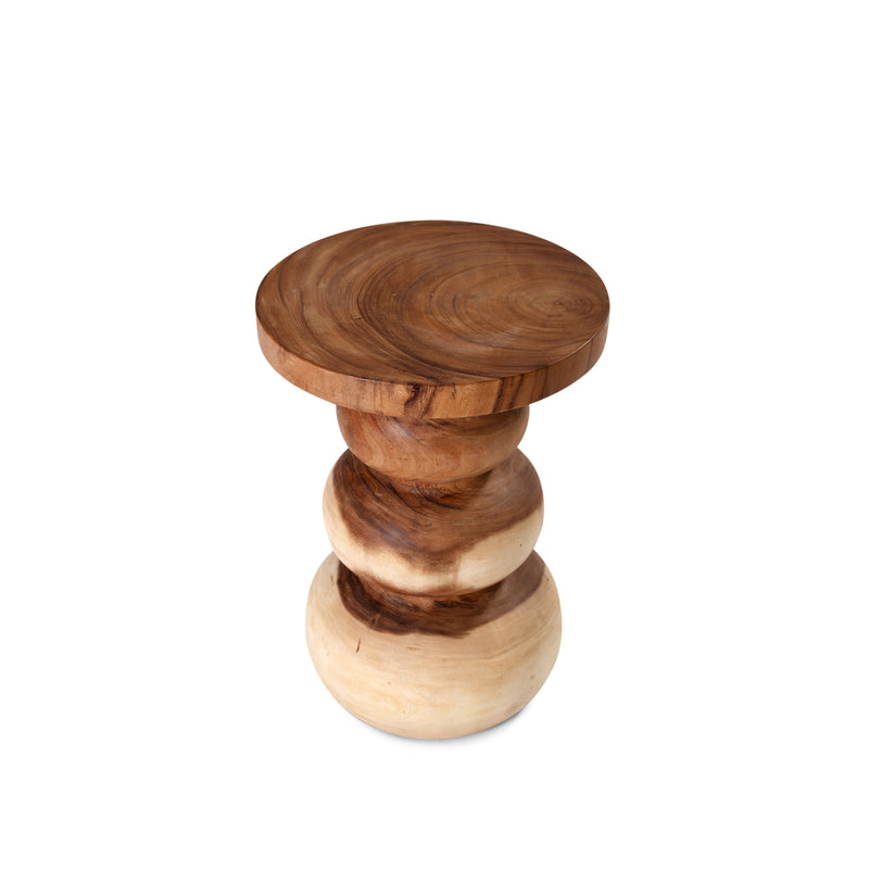 Layered ball stool constructed from raw meh wood. This hardwood stool is highly durable. Colours/finishes between items may vary and some slightly cracking can occur, due to the natural nature of the timber.
