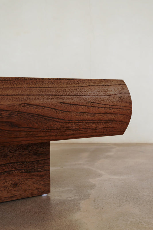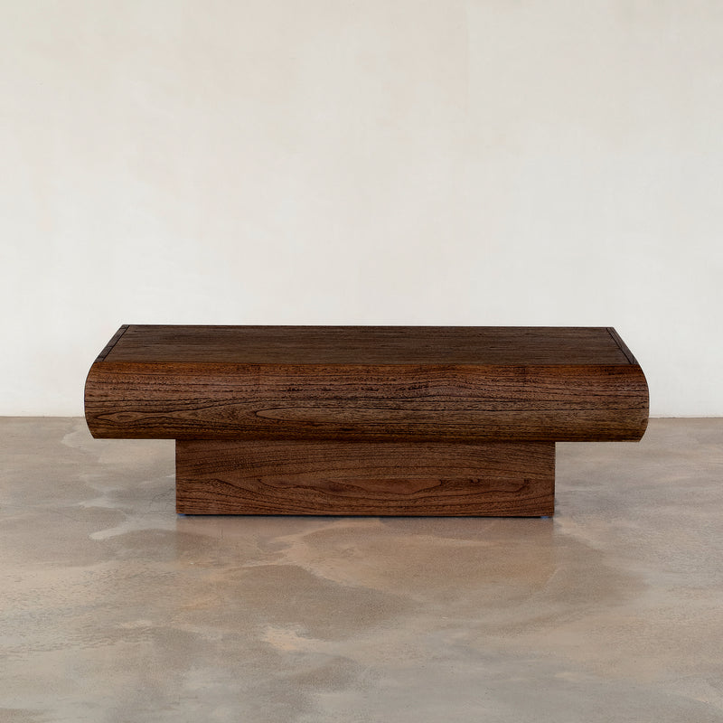 The Pierce Rectangular Coffee Table is defined by its bold, sculptural silhouette and rich rustic walnut finish. Featuring softly curved edges and a solid central base, its elongated form creates a strong yet balanced presence in the living space. The generous rectangular tabletop offers ample surface area while maintaining a grounded, architectural feel. A timeless coffee table design suited to both contemporary and classic interiors.