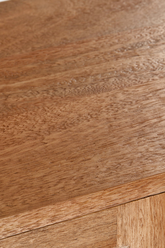 • Mango wood natural sealed finish with natural rattan inserts, Hafele superior German engineered hardware.