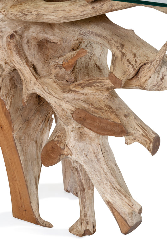 - Organic old teak root excavated under a government licence from old teak plantations, 10 mm polished edge glass
