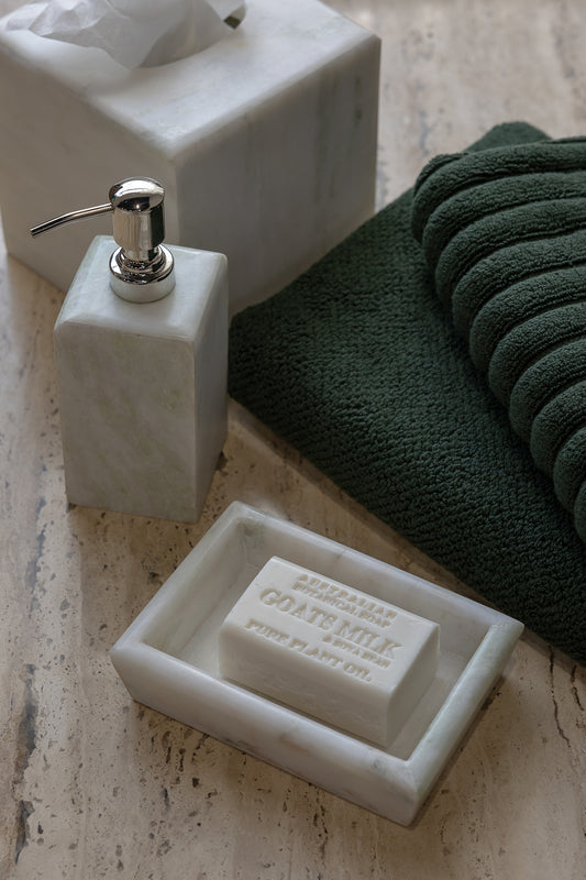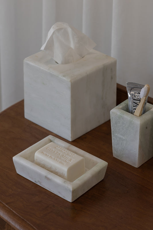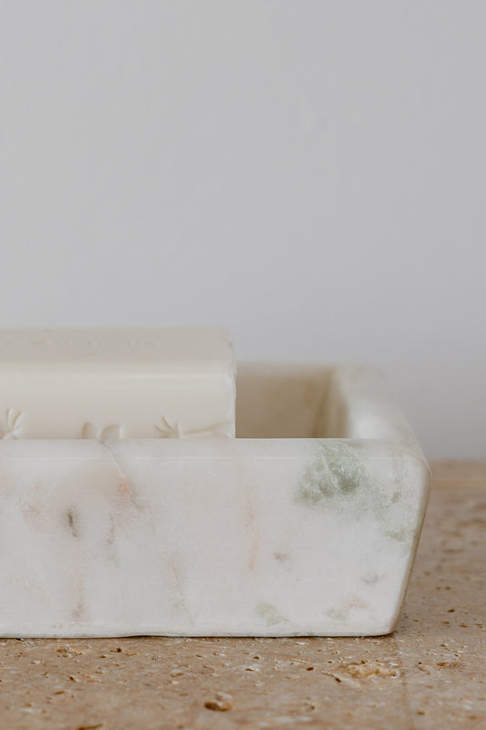 A refined addition to bathroom or kitchen styling, the Soap Dish in Onyx Marble brings understated elegance and natural beauty to everyday spaces. Defined by its clean rectangular form and soft natural veining, it offers a considered balance of function and formal perfect for keeping soap neatly stored while elevating your countertop or sink area.
