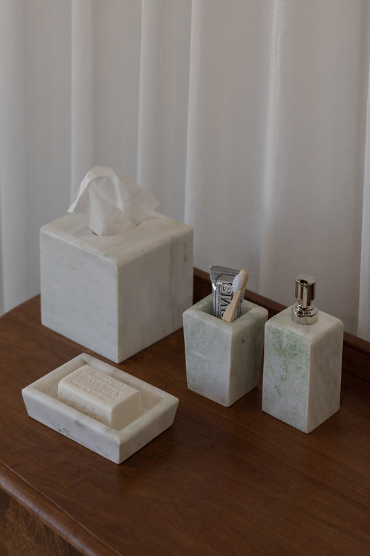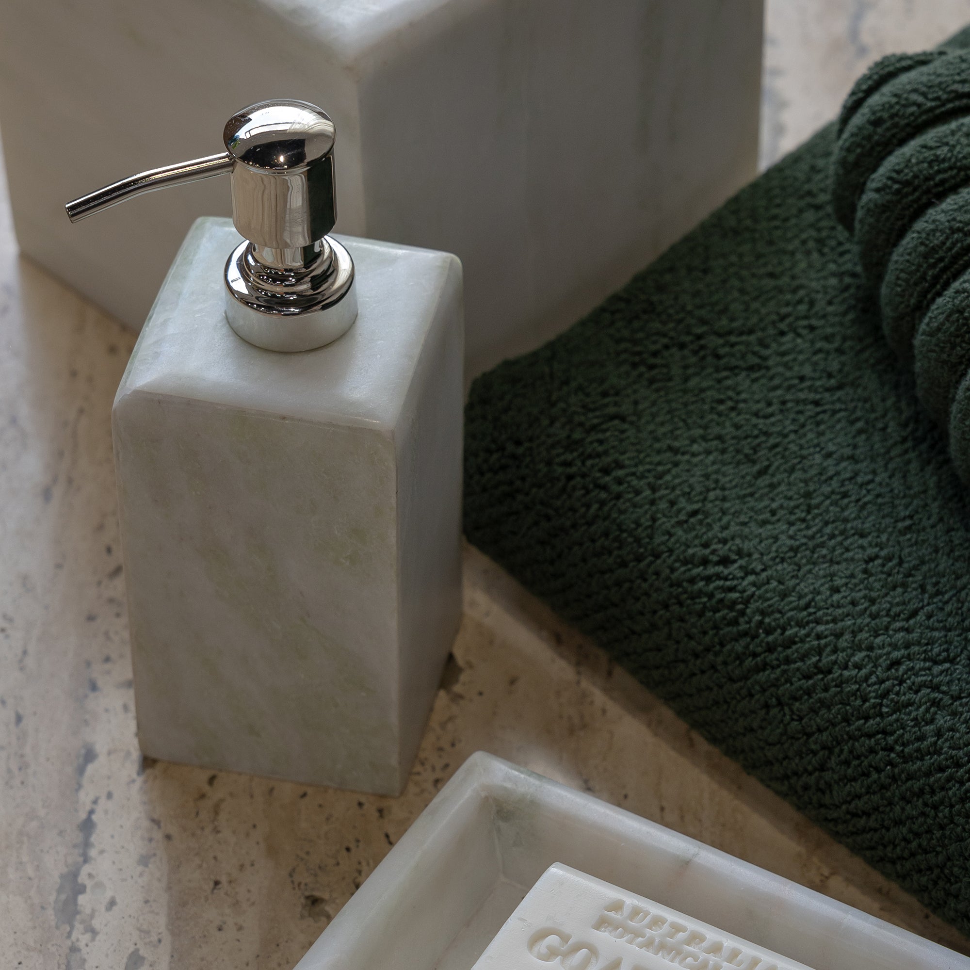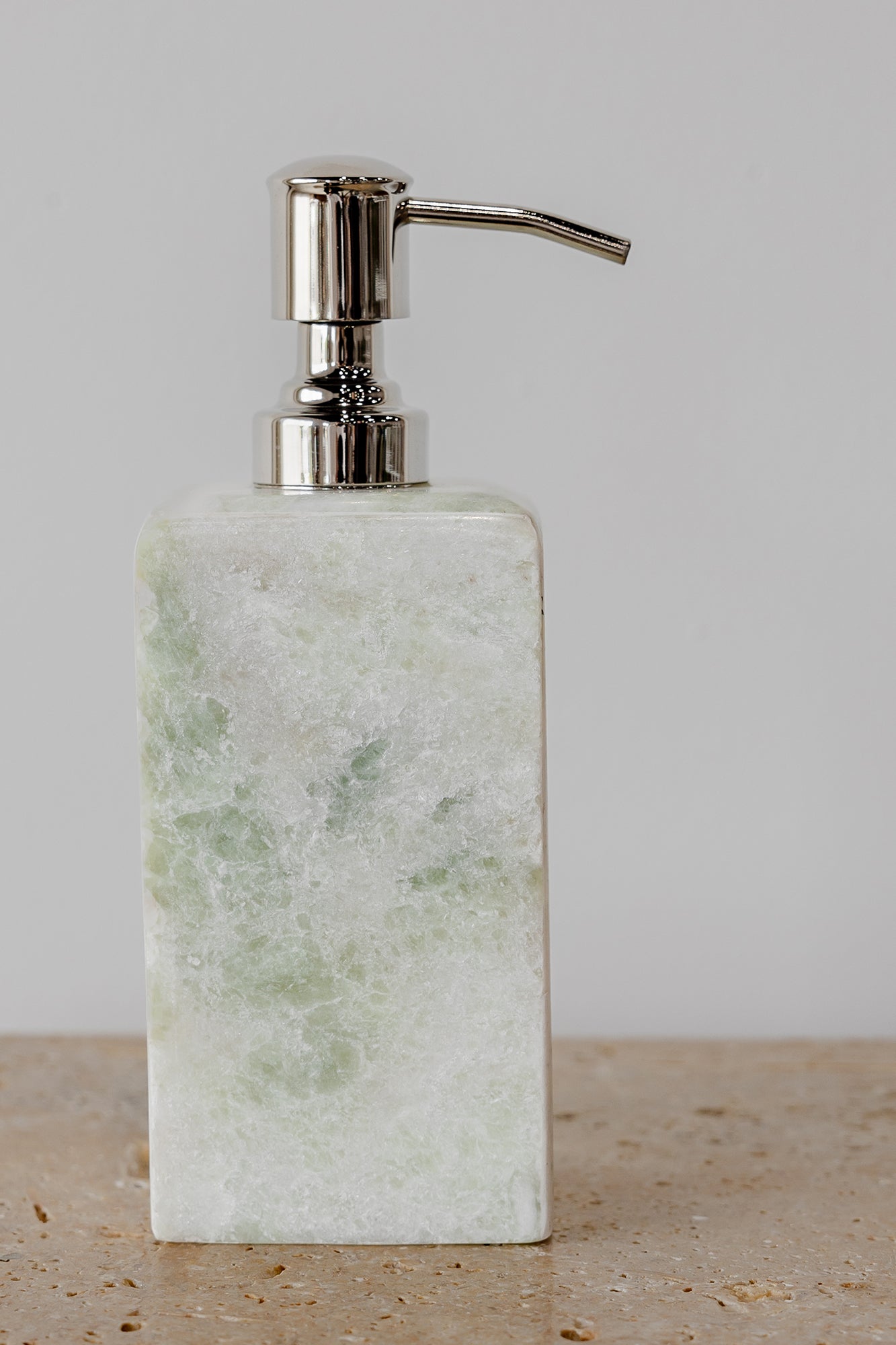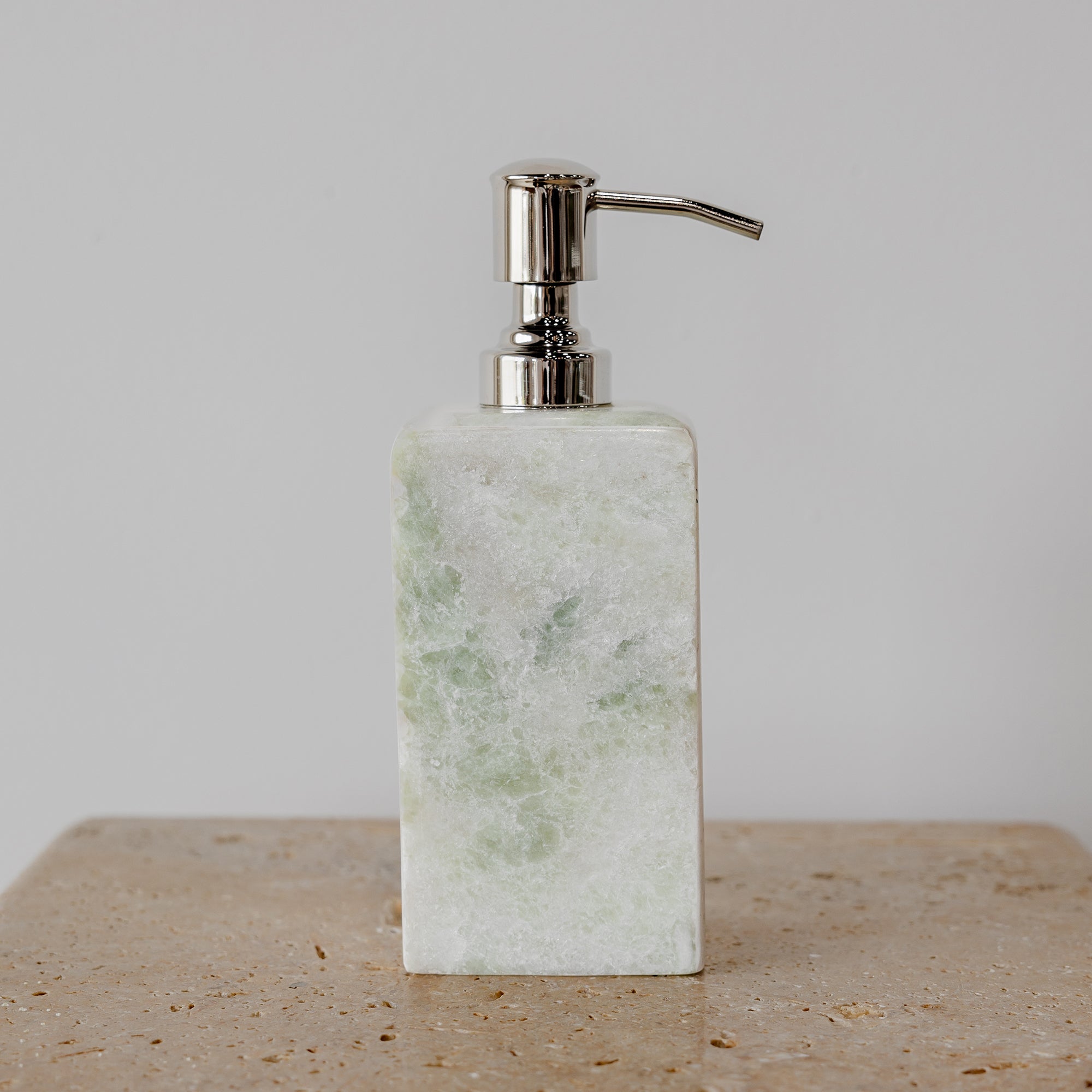 A refined addition to bathroom or kitchen styling, the Soap Dispenser in Onyx Marble brings understated elegance to everyday routines. Featuring a clean, rectangular form paired with a polished metal pump, it offers a balanced blend of function and sculptural appeal elevating benchtops, sinks and vanities with ease.
