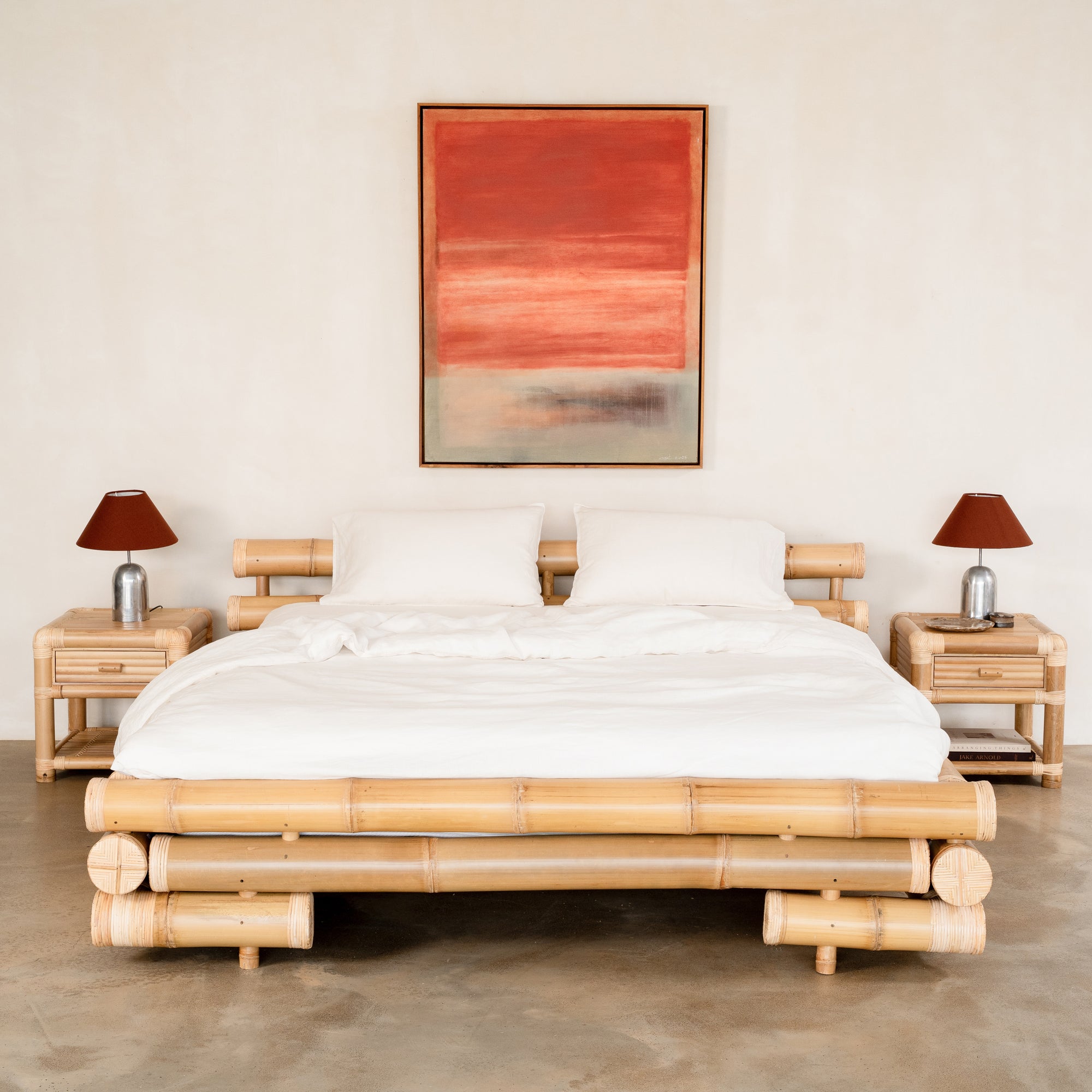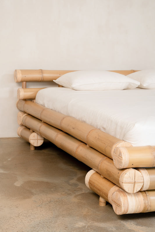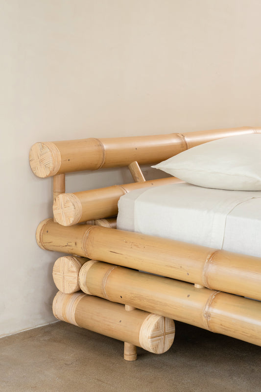 A modern bamboo bed frame that brings softness and structure to the bedroom. The clean lines, warm natural tone and durable slat support create a serene, resort-like foundation for contemporary interiors.